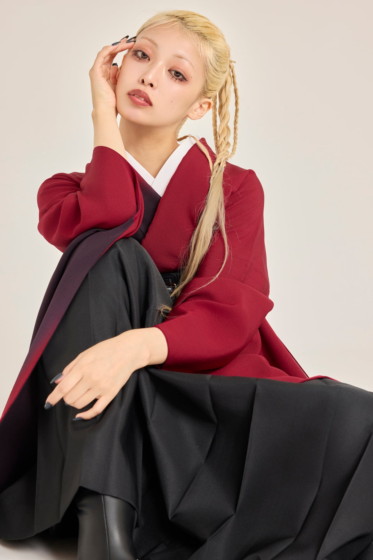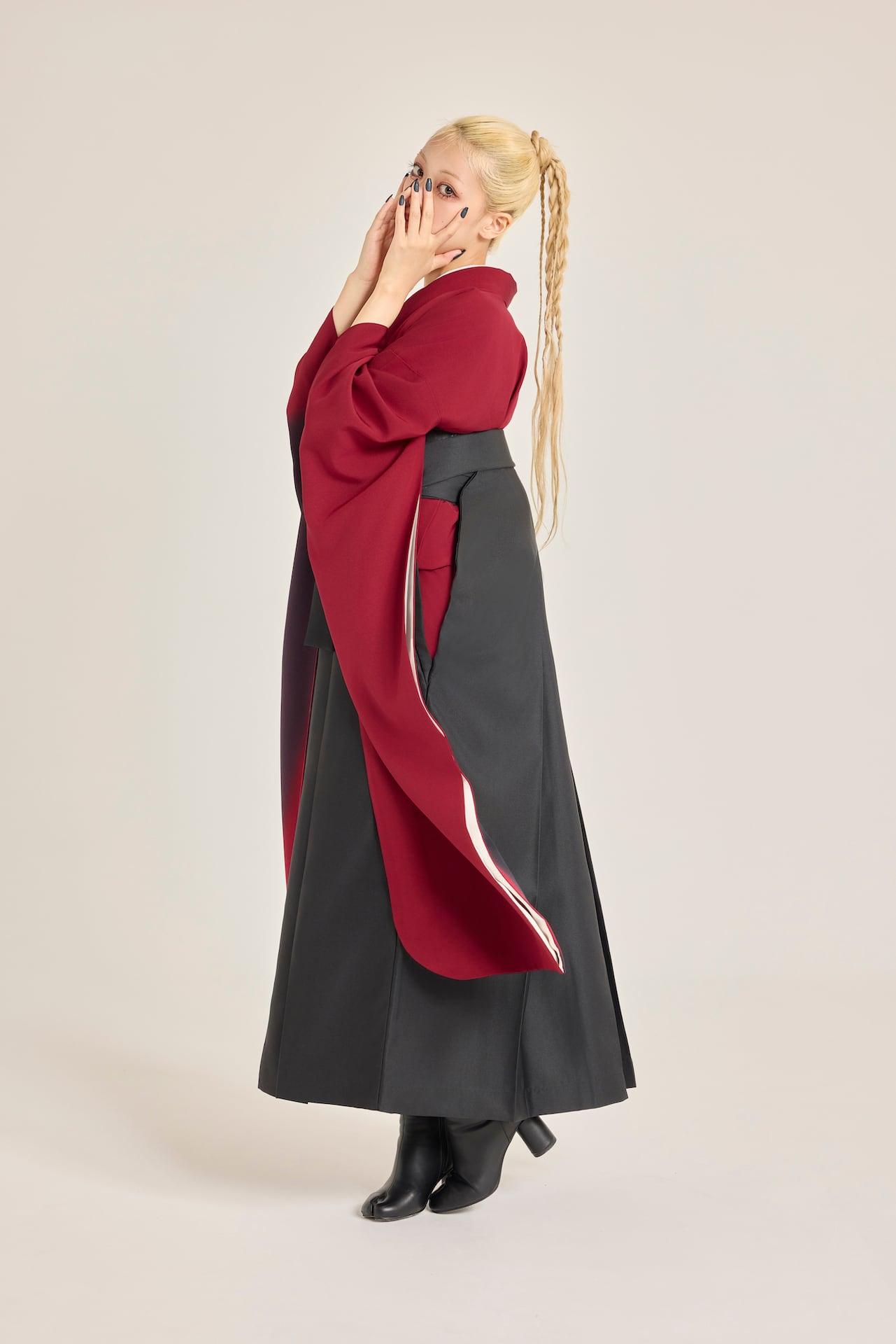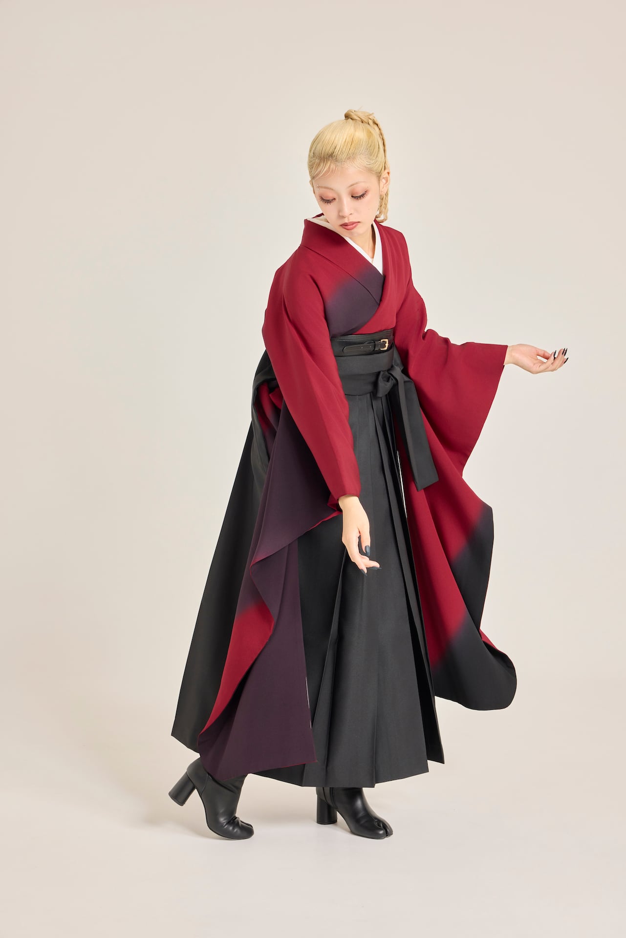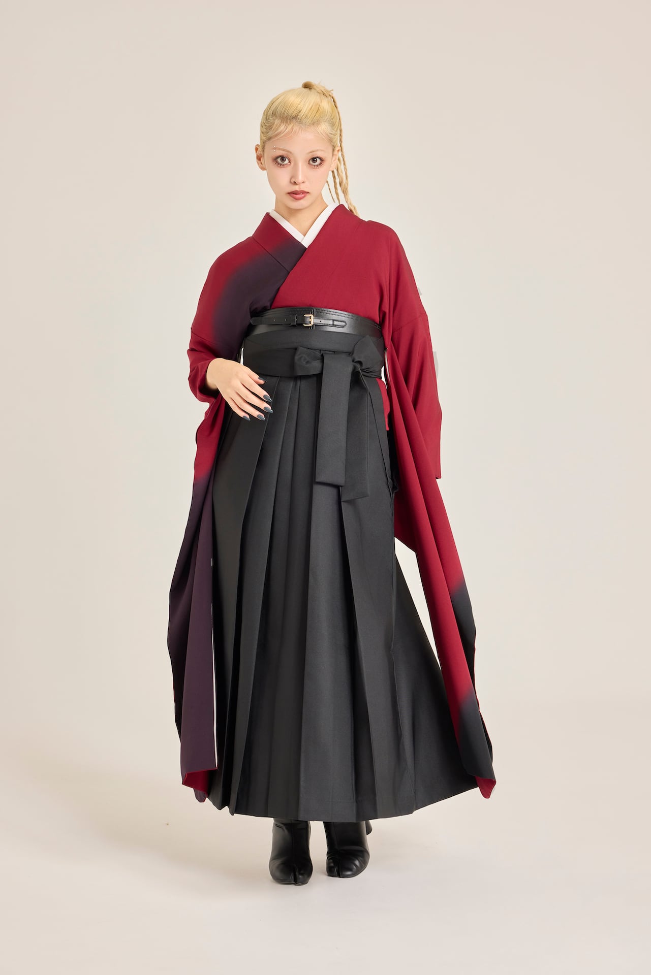 振袖/袴/半幅帯/足袋ブーツ/長襦袢/肌襦袢/足袋ソックス/衿芯/腰紐×4/伊達締め×2/コーリンベルト/帯板(小)/脱脂綿/ガーゼ