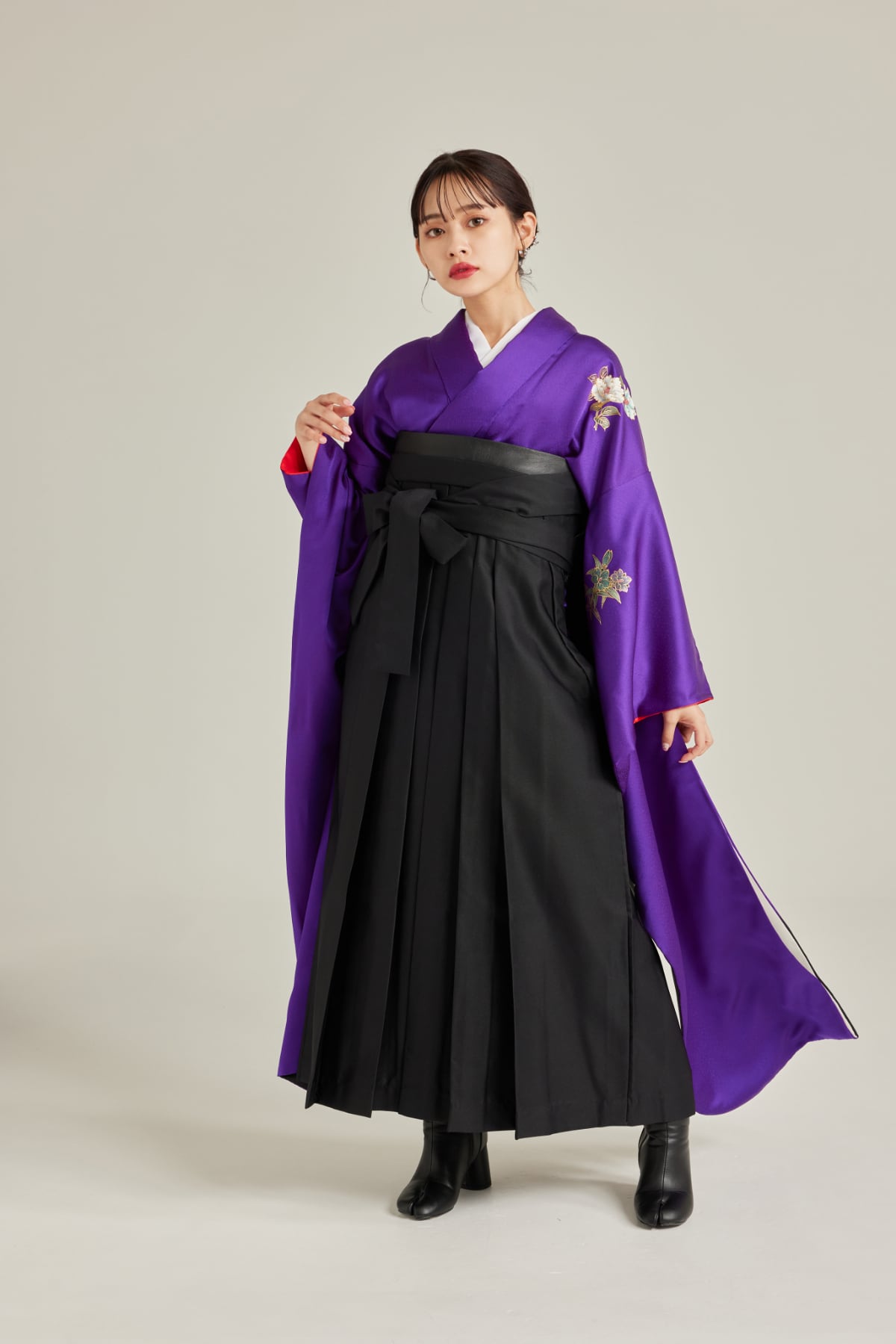 振袖/袴/半幅帯/足袋ブーツ/長襦袢/肌襦袢/足袋ソックス/衿芯/腰紐×4/伊達締め×2/コーリンベルト/帯板(小)/脱脂綿/ガーゼ