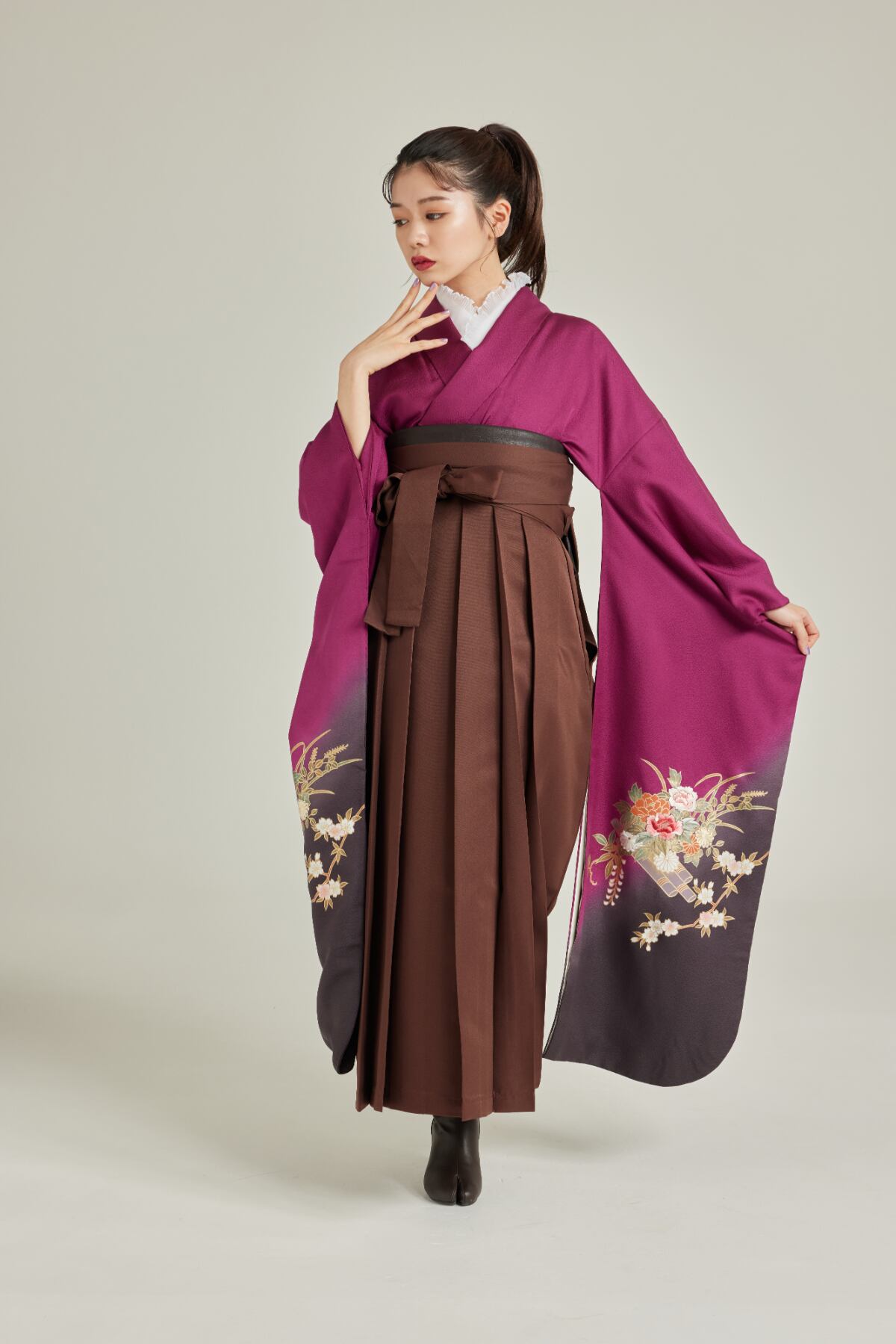 振袖/袴/半幅帯/足袋ブーツ/長襦袢/肌襦袢/足袋ソックス/衿芯/腰紐×4/伊達締め×2/コーリンベルト/帯板(小)/脱脂綿/ガーゼ