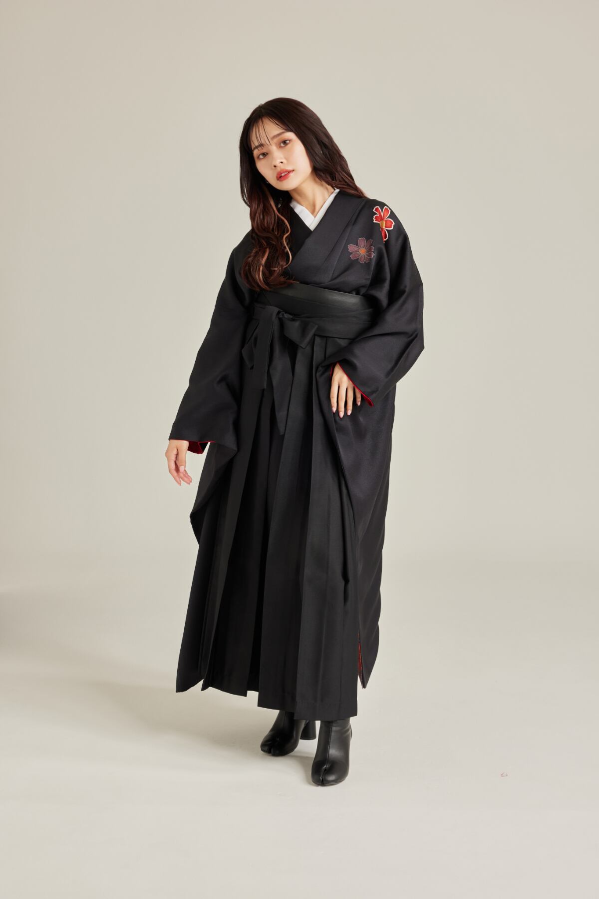 振袖/袴/半幅帯/足袋ブーツ/長襦袢/肌襦袢/足袋ソックス/衿芯/腰紐×4/伊達締め×2/コーリンベルト/帯板(小)/脱脂綿/ガーゼ