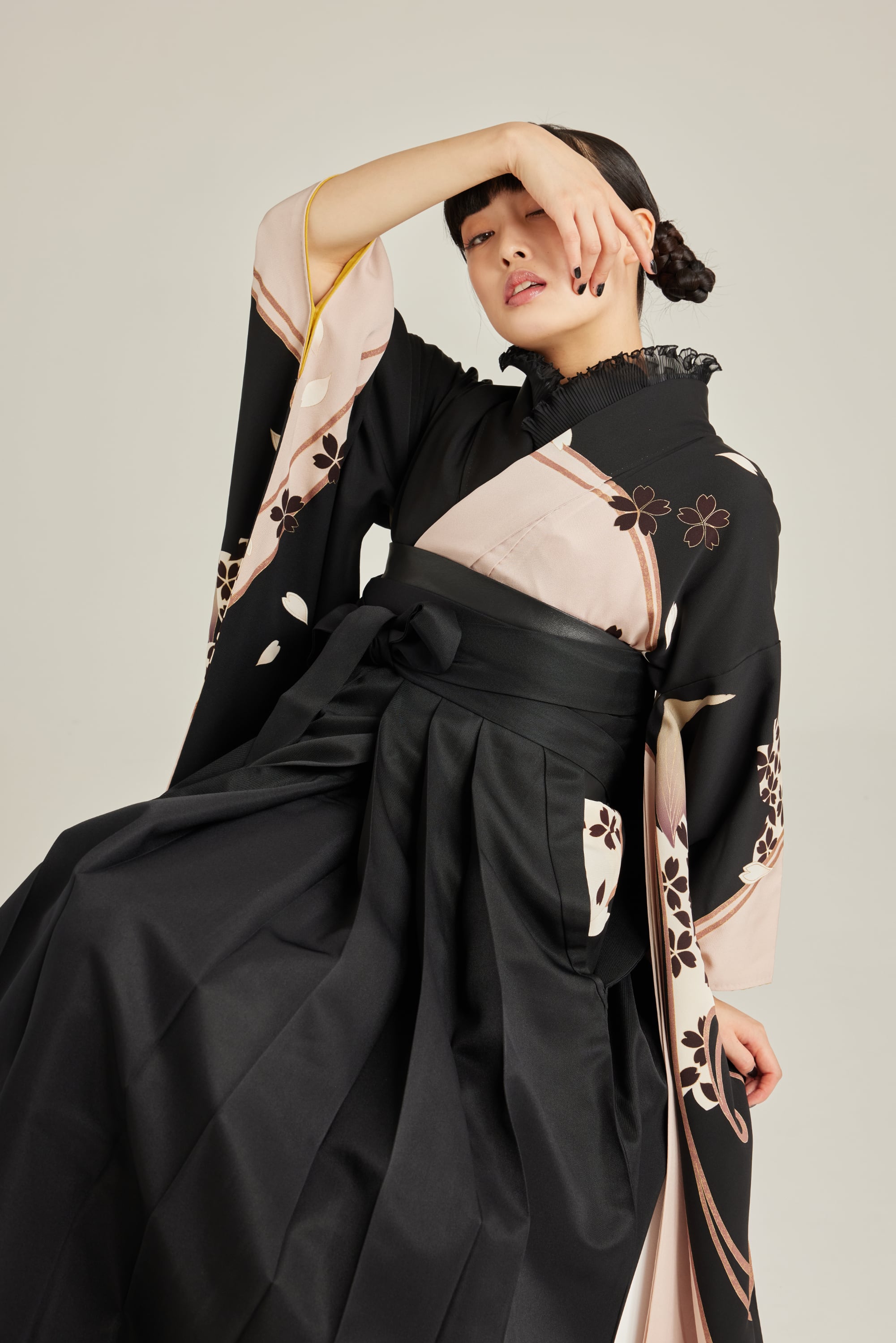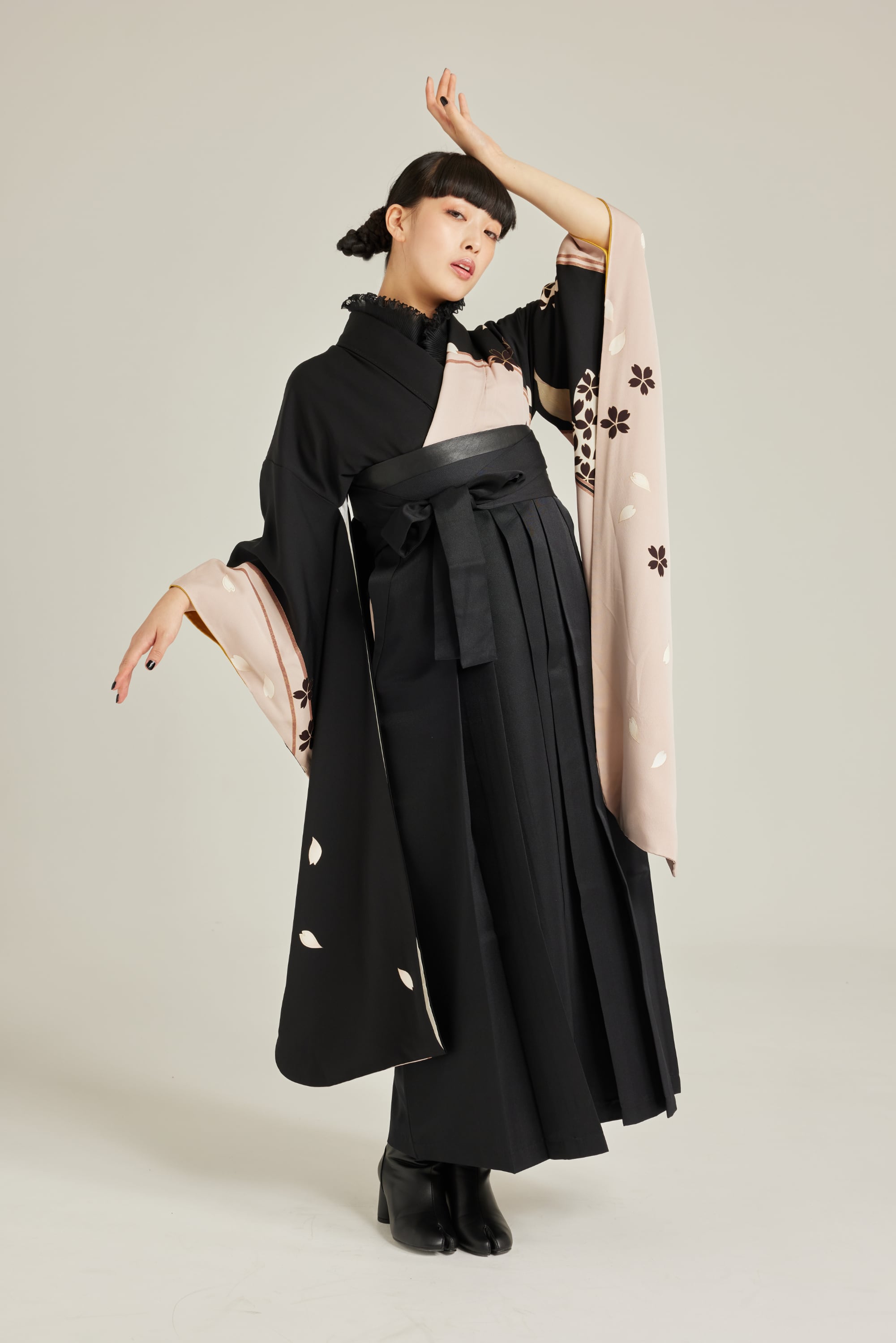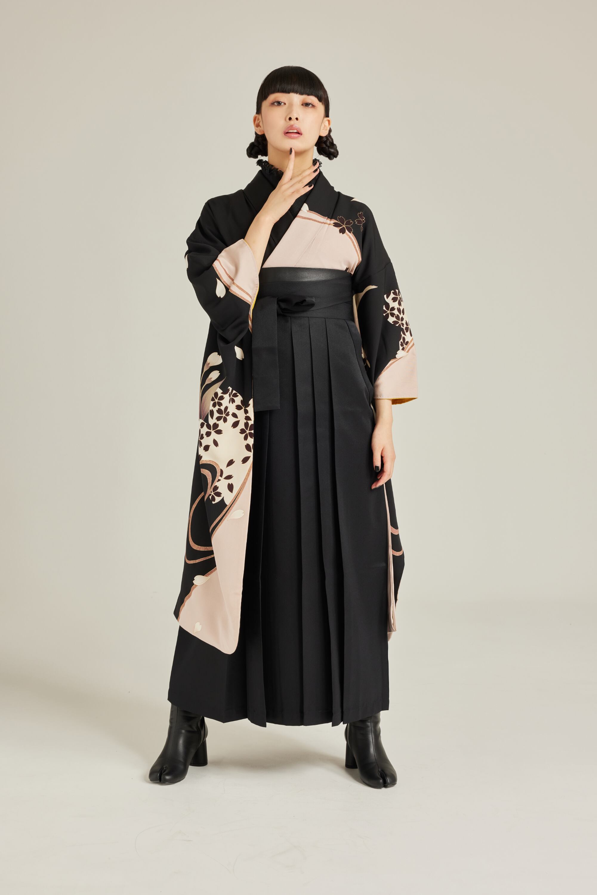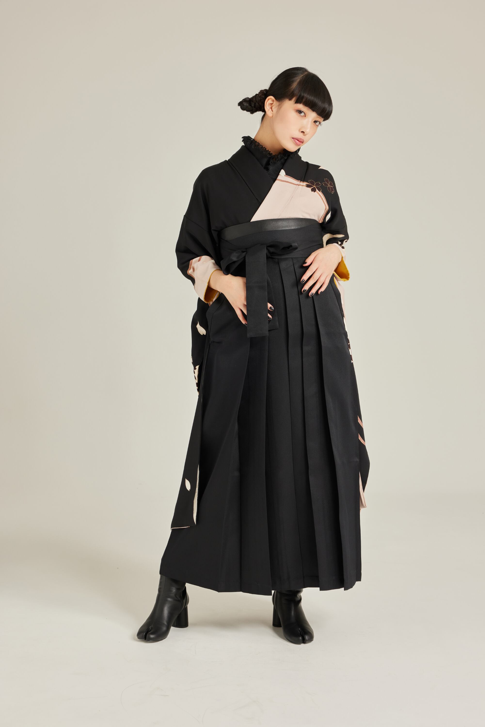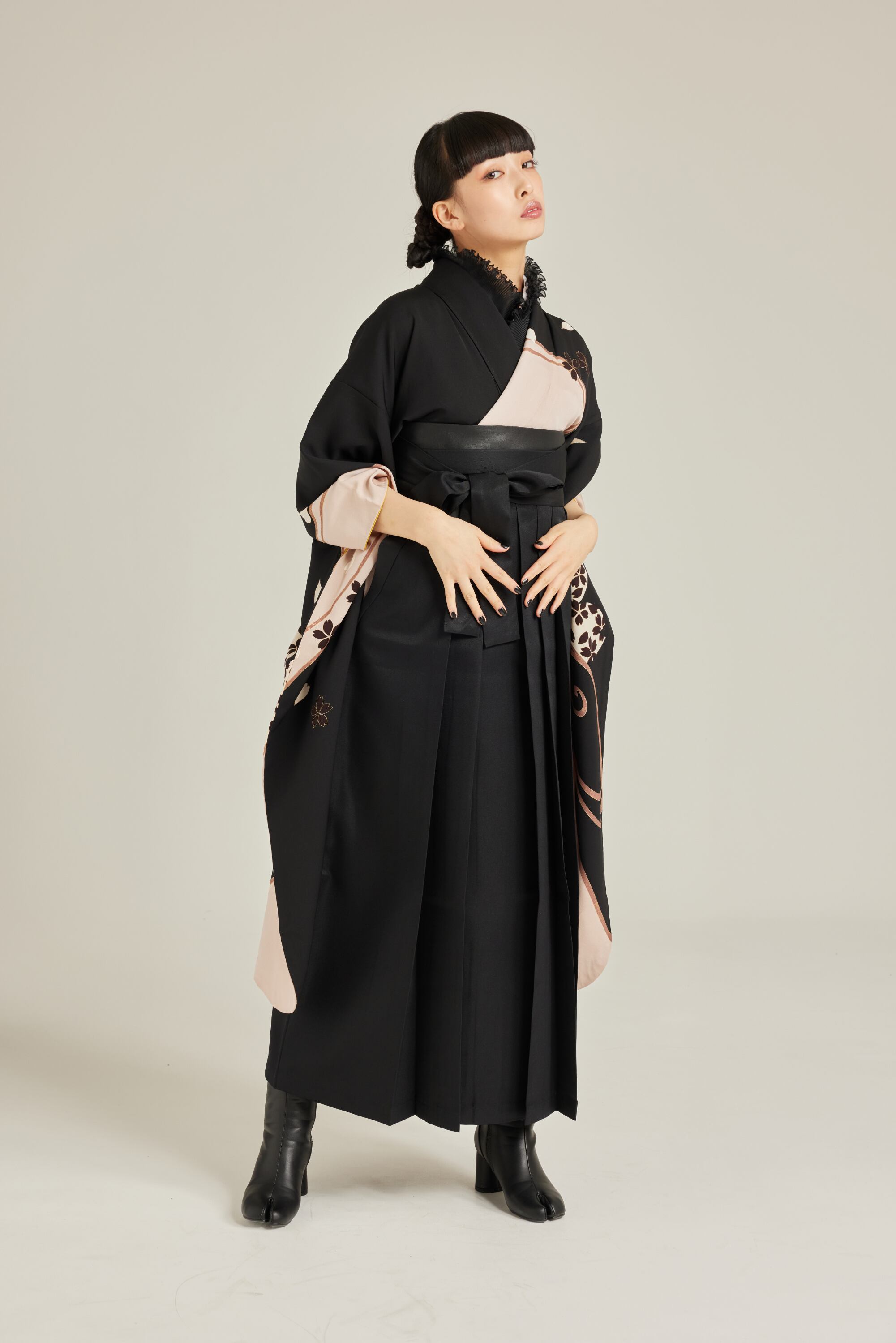 振袖/袴/半幅帯/足袋ブーツ/長襦袢/肌襦袢/足袋ソックス/衿芯/腰紐×4/伊達締め×2/コーリンベルト/帯板(小)/脱脂綿/ガーゼ