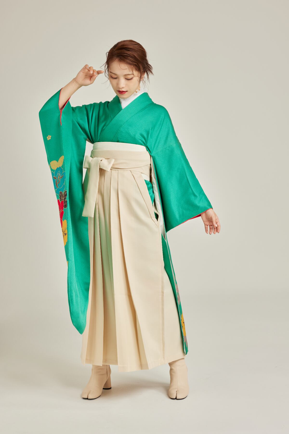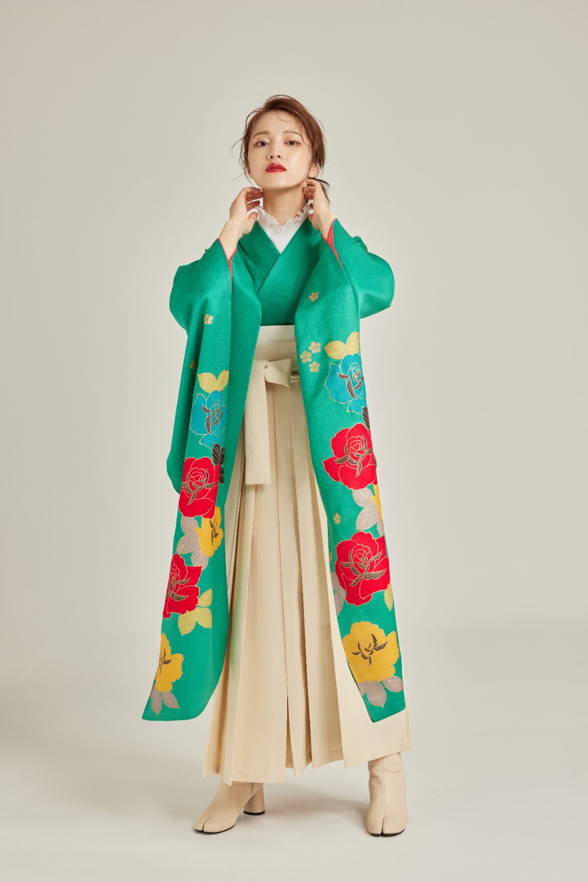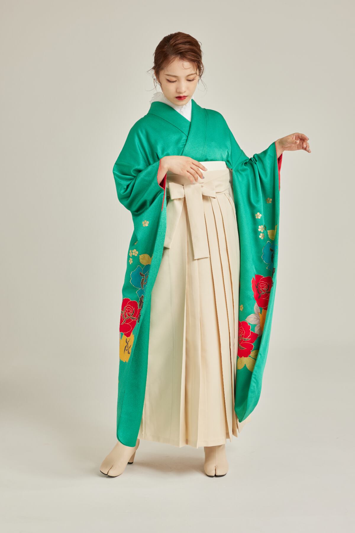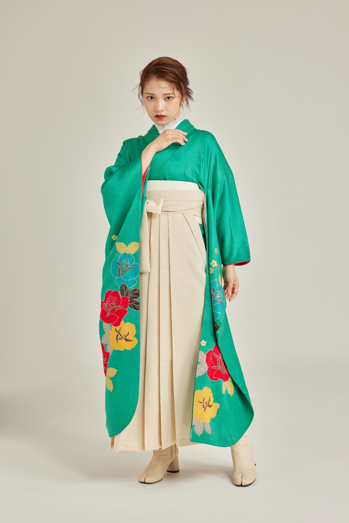 振袖/袴/半幅帯/足袋ブーツ/長襦袢/肌襦袢/足袋ソックス/衿芯/腰紐×4/伊達締め×2/コーリンベルト/帯板(小)/脱脂綿/ガーゼ