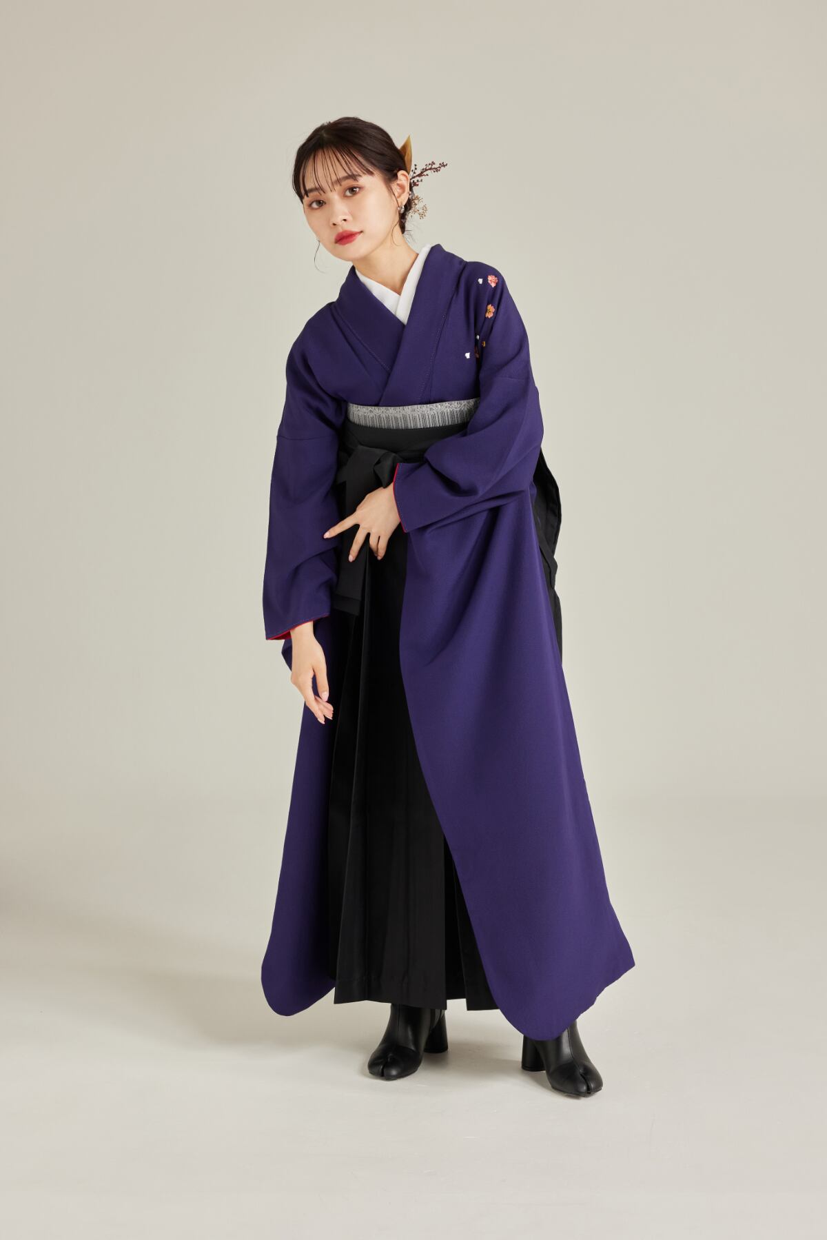 振袖/袴/半幅帯/足袋ブーツ/長襦袢/肌襦袢/足袋ソックス/衿芯/腰紐×4/伊達締め×2/コーリンベルト/帯板(小)/脱脂綿/ガーゼ