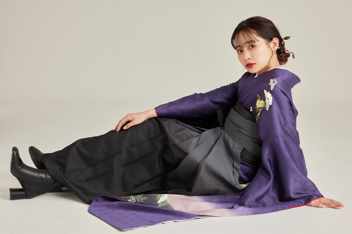 振袖/袴/半幅帯/足袋ブーツ/長襦袢/肌襦袢/足袋ソックス/衿芯/腰紐×4/伊達締め×2/コーリンベルト/帯板(小)/脱脂綿/ガーゼ