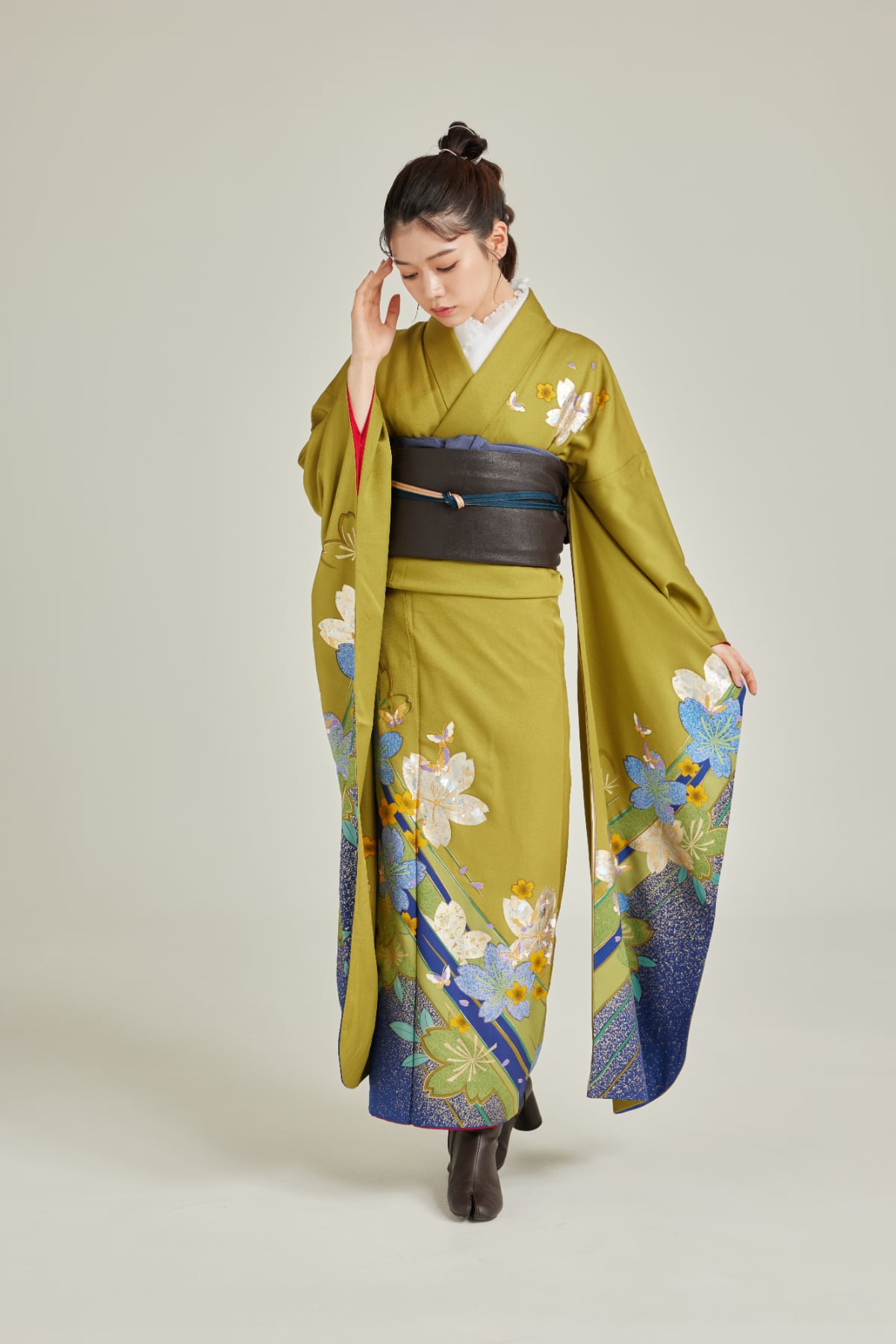 振袖/帯/帯揚げ/帯締め/足袋ブーツ/長襦袢/肌襦袢/足袋ソックス/衿芯/肌襦袢/腰紐×4/伊達締め×2/帯枕/三重仮紐/コーリンベルト/前板/後板/脱脂綿/ガーゼ