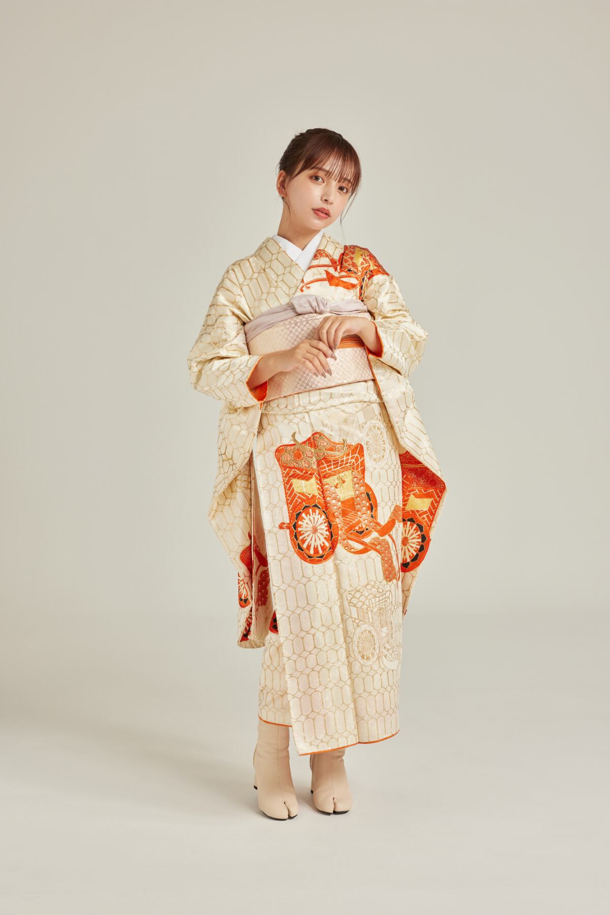 振袖/帯/帯揚げ/帯締め/足袋ブーツ/長襦袢/肌襦袢/足袋ソックス/衿芯/腰紐×4/伊達締め×2/帯枕/三重仮紐/コーリンベルト/前板/後板/脱脂綿/ガーゼ