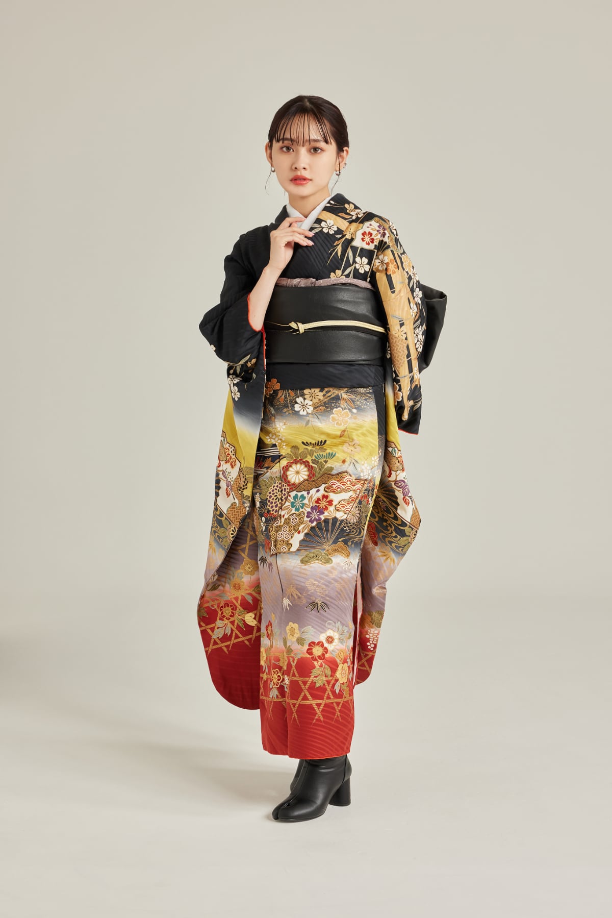 振袖/帯/帯揚げ/帯締め/足袋ブーツ/長襦袢/肌襦袢/足袋ソックス/衿芯/肌襦袢/腰紐×4/伊達締め×2/帯枕/三重仮紐/コーリンベルト/前板/後板/脱脂綿/ガーゼ