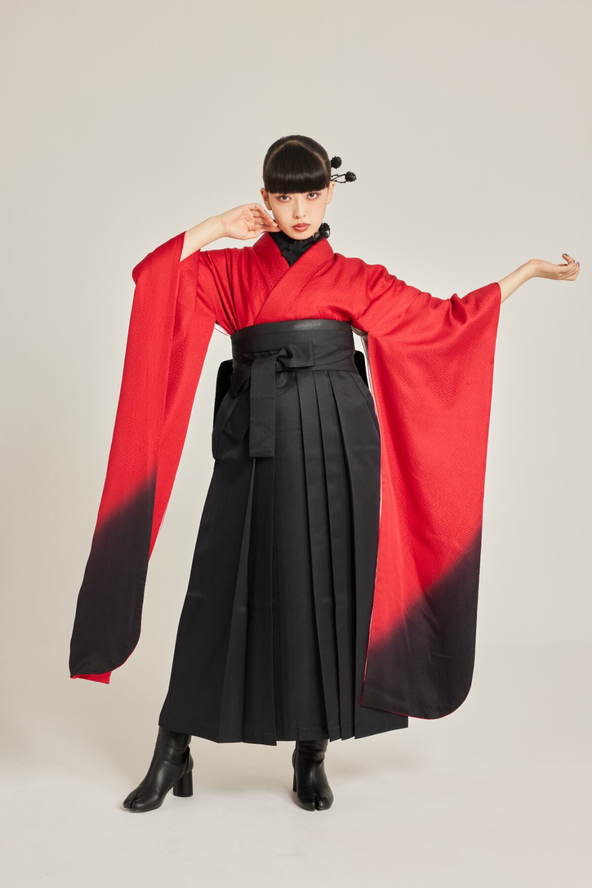 振袖/袴/半幅帯/足袋ブーツ/長襦袢/肌襦袢/足袋ソックス/衿芯/腰紐×4/伊達締め×2/コーリンベルト/帯板(小)/脱脂綿/ガーゼ