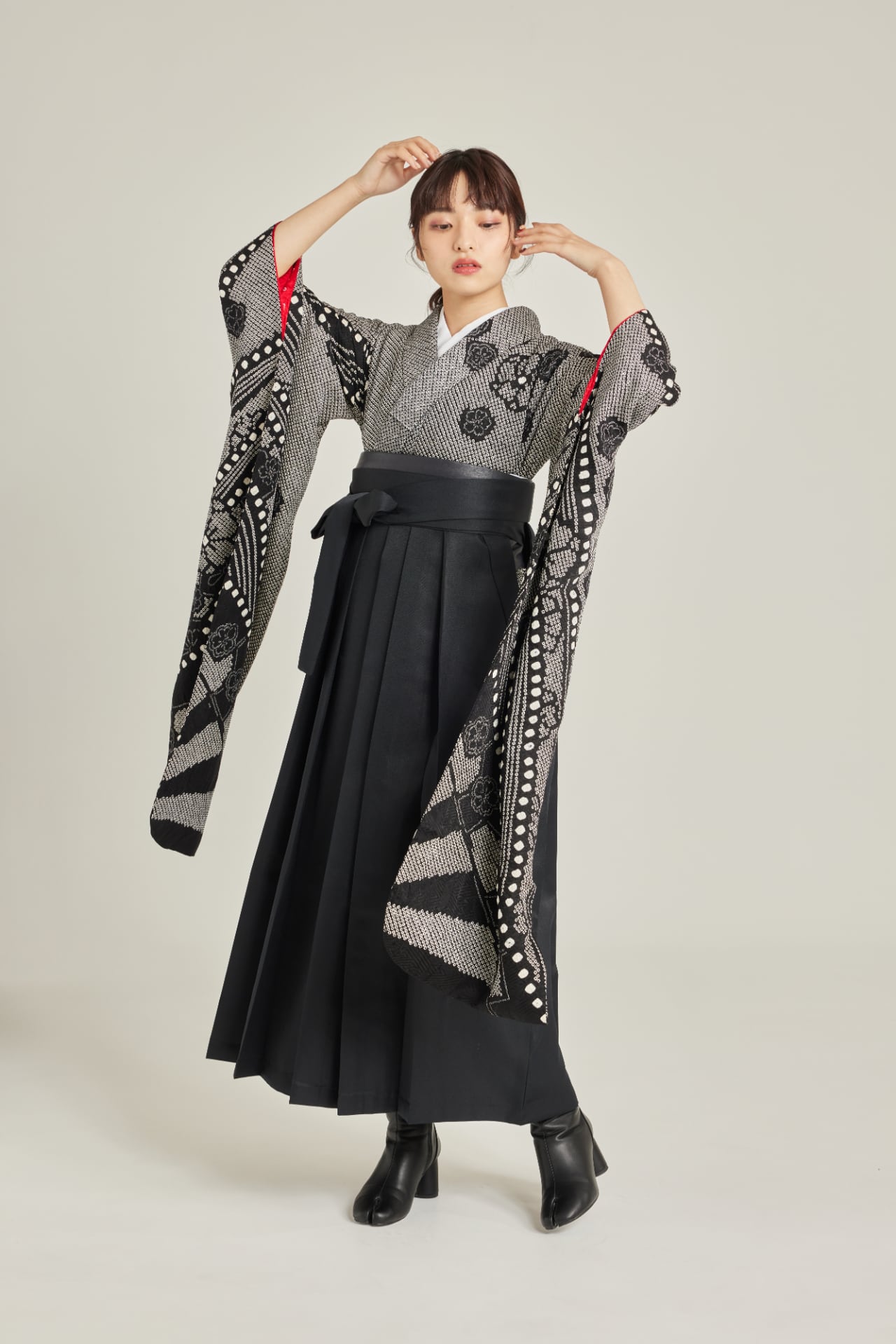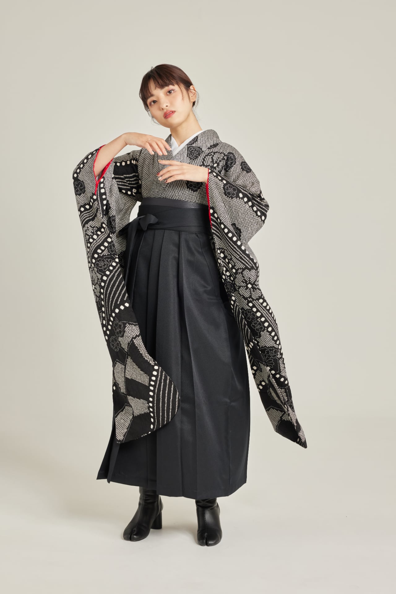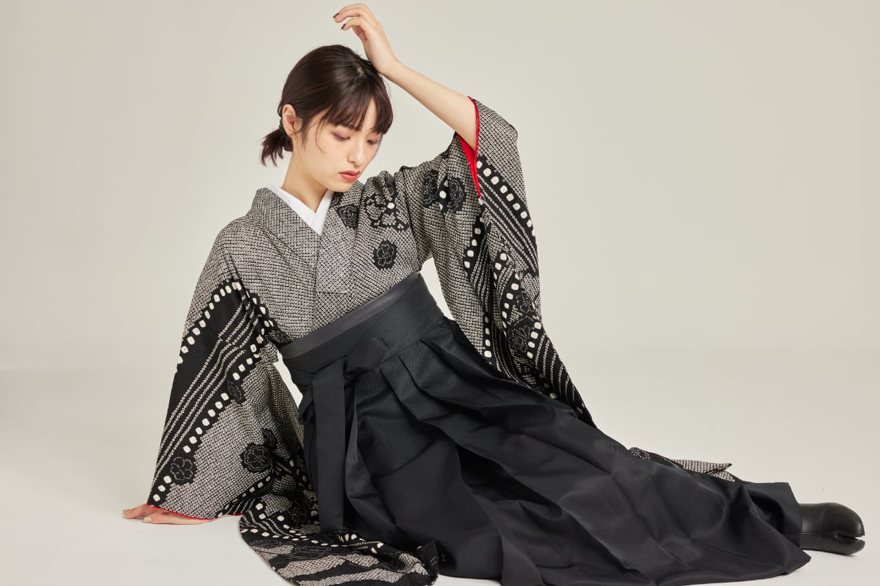 振袖/袴/半幅帯/足袋ブーツ/長襦袢/肌襦袢/足袋ソックス/衿芯/腰紐×4/伊達締め×2/コーリンベルト/帯板(小)/脱脂綿/ガーゼ