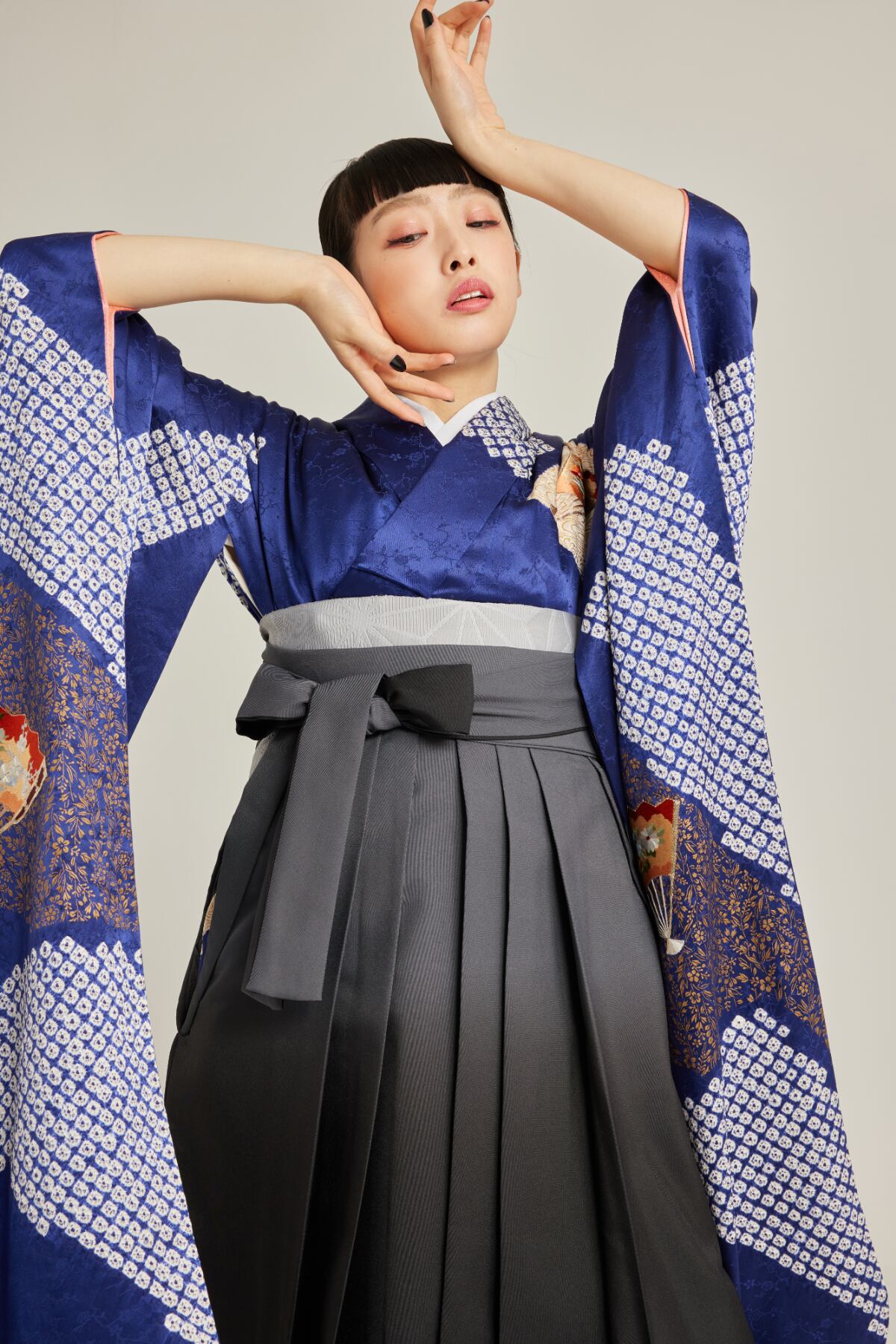振袖/袴/半幅帯/足袋ブーツ/長襦袢/肌襦袢/足袋ソックス/衿芯/腰紐×4/伊達締め×2/コーリンベルト/帯板(小)/脱脂綿/ガーゼ
