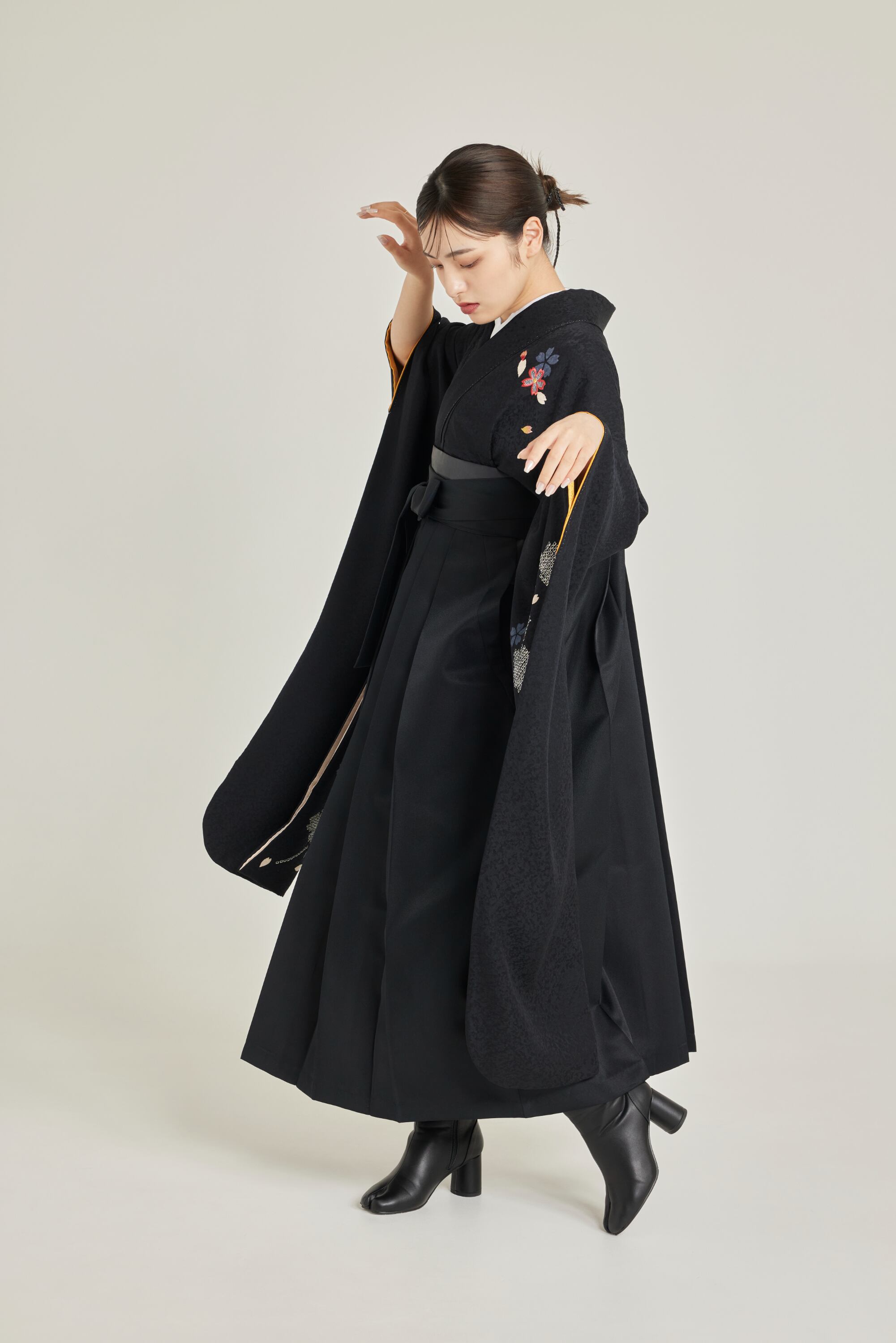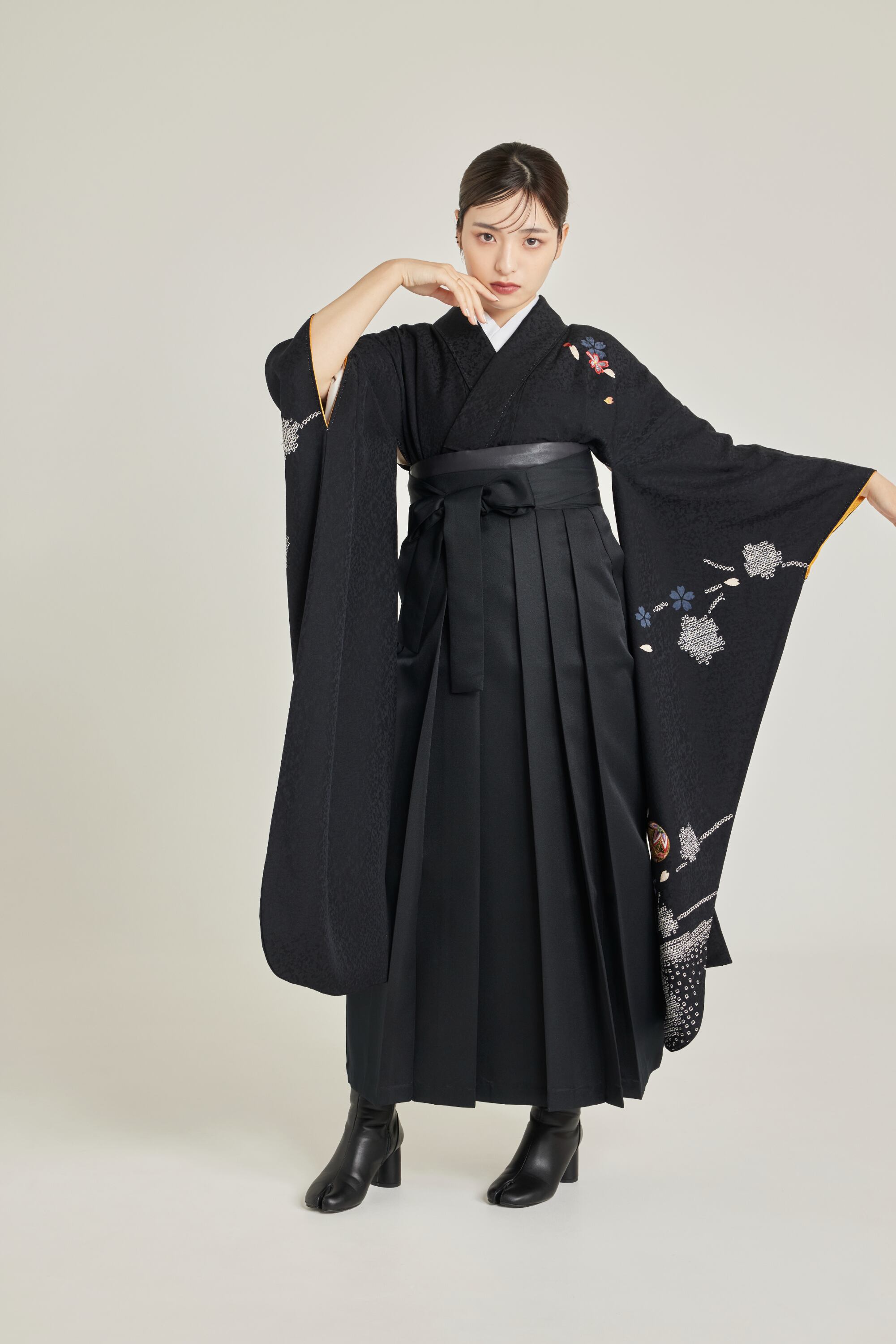 振袖/袴/半幅帯/足袋ブーツ/長襦袢/肌襦袢/足袋ソックス/衿芯/腰紐×4/伊達締め×2/コーリンベルト/帯板(小)/脱脂綿/ガーゼ
