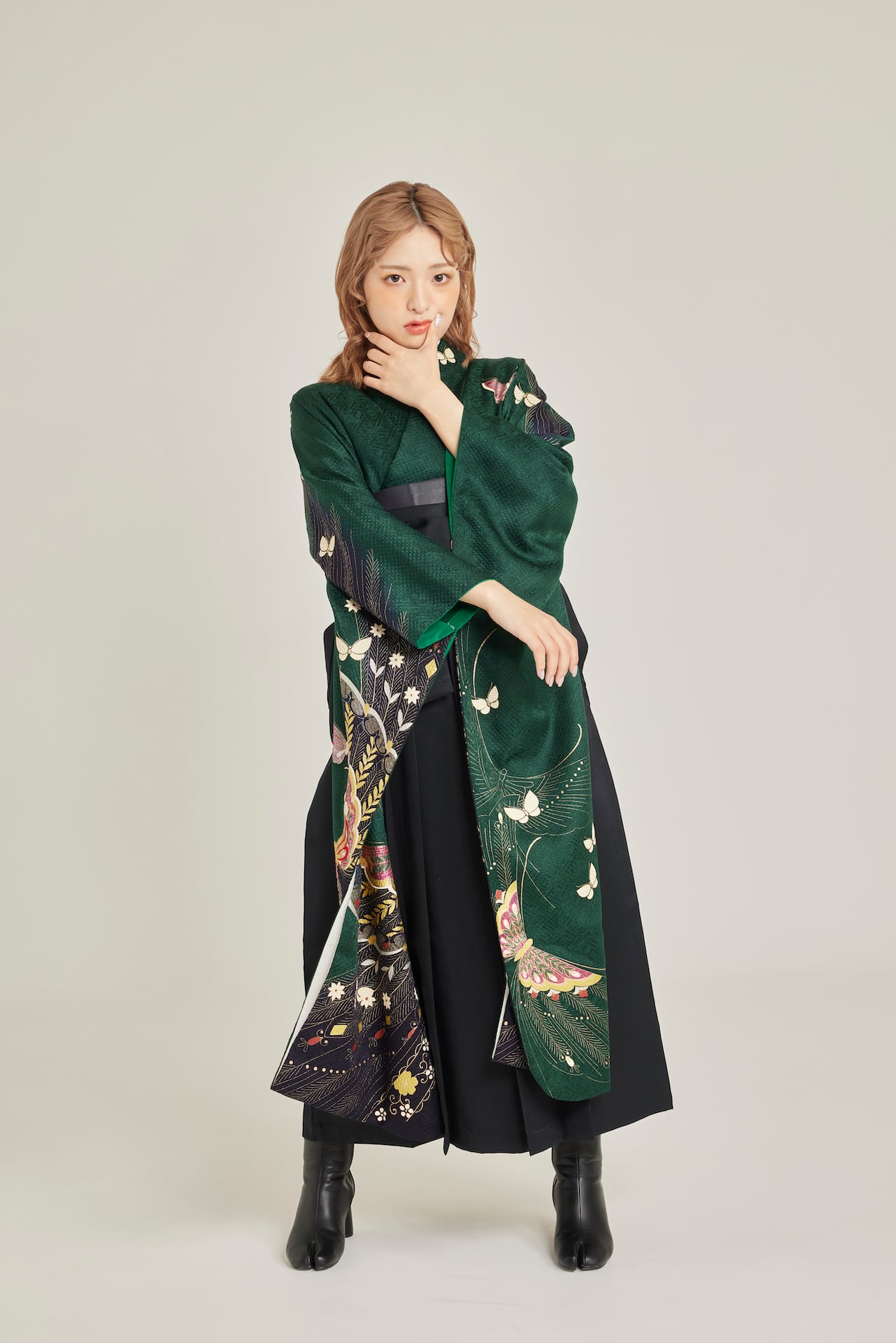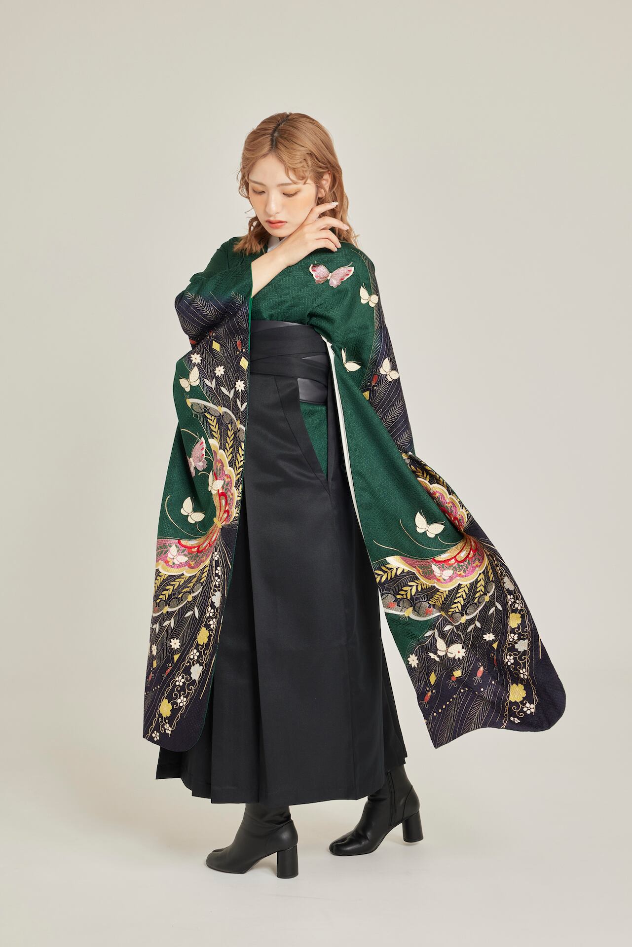振袖/袴/半幅帯/足袋ブーツ/長襦袢/肌襦袢/足袋ソックス/衿芯/腰紐×4/伊達締め×2/コーリンベルト/帯板(小)/脱脂綿/ガーゼ