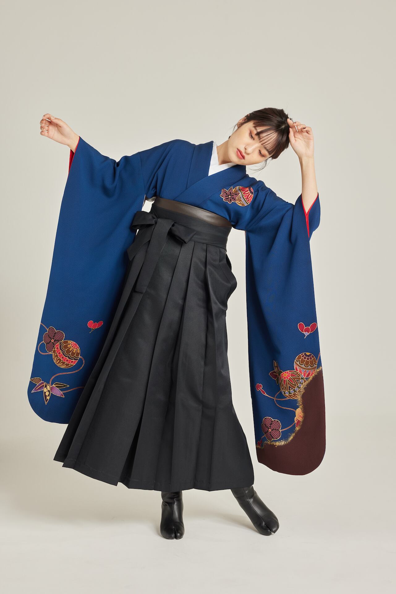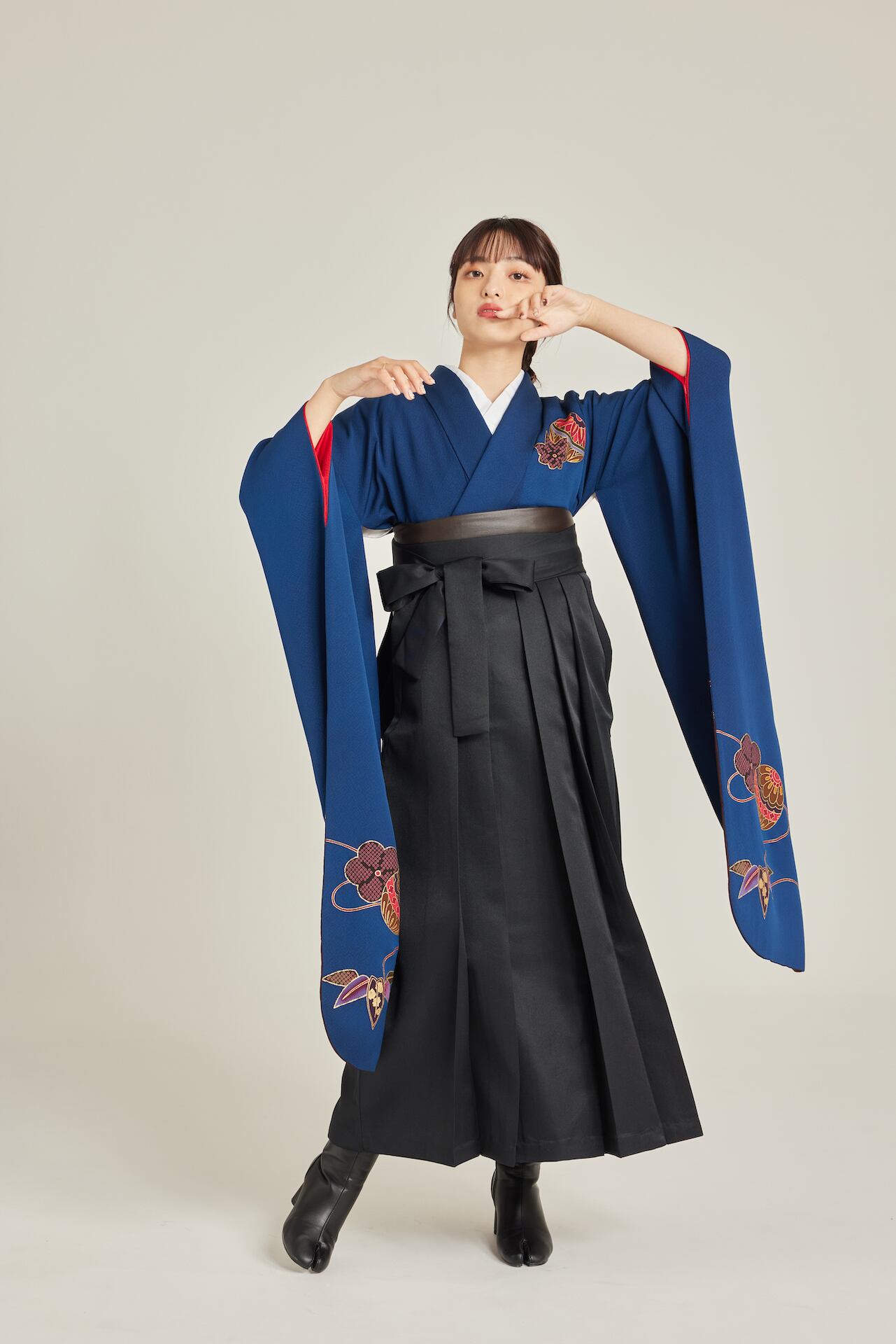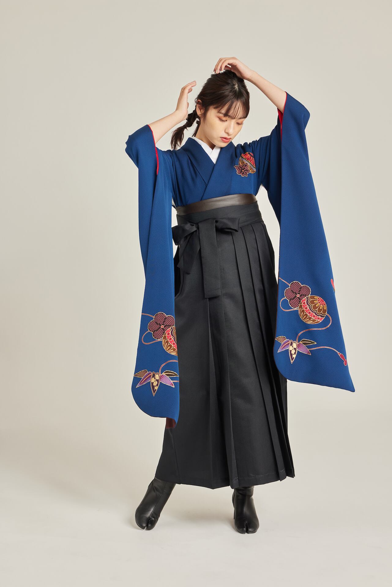 振袖/袴/半幅帯/足袋ブーツ/長襦袢/肌襦袢/足袋ソックス/衿芯/腰紐×4/伊達締め×2/コーリンベルト/帯板(小)/脱脂綿/ガーゼ