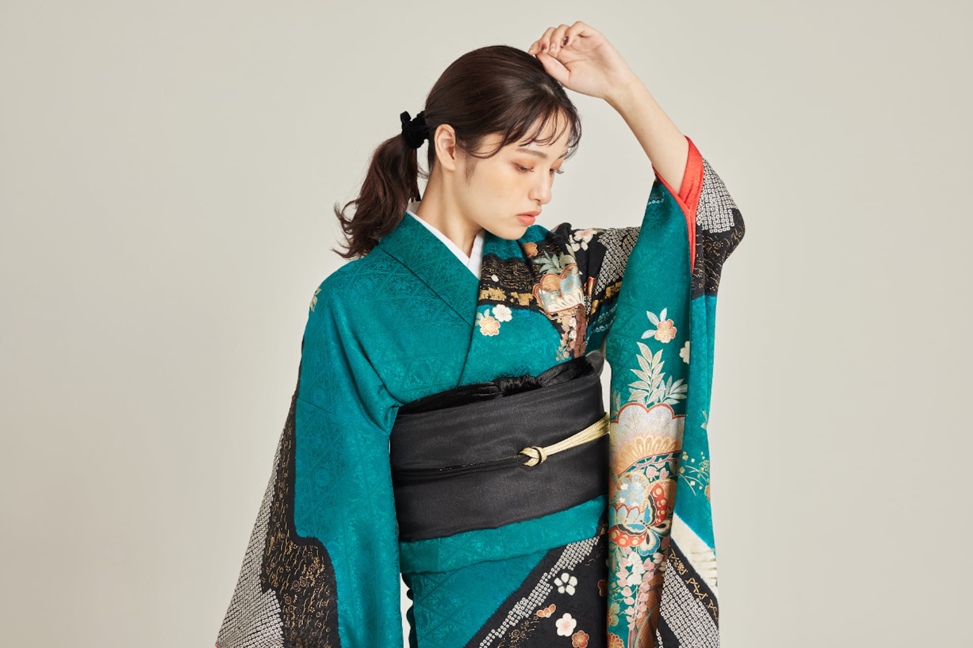 振袖/帯/帯揚げ/帯締め/足袋ブーツ/長襦袢/肌襦袢/足袋ソックス/衿芯/肌襦袢/腰紐×4/伊達締め×2/帯枕/三重仮紐/コーリンベルト/前板/後板/脱脂綿/ガーゼ