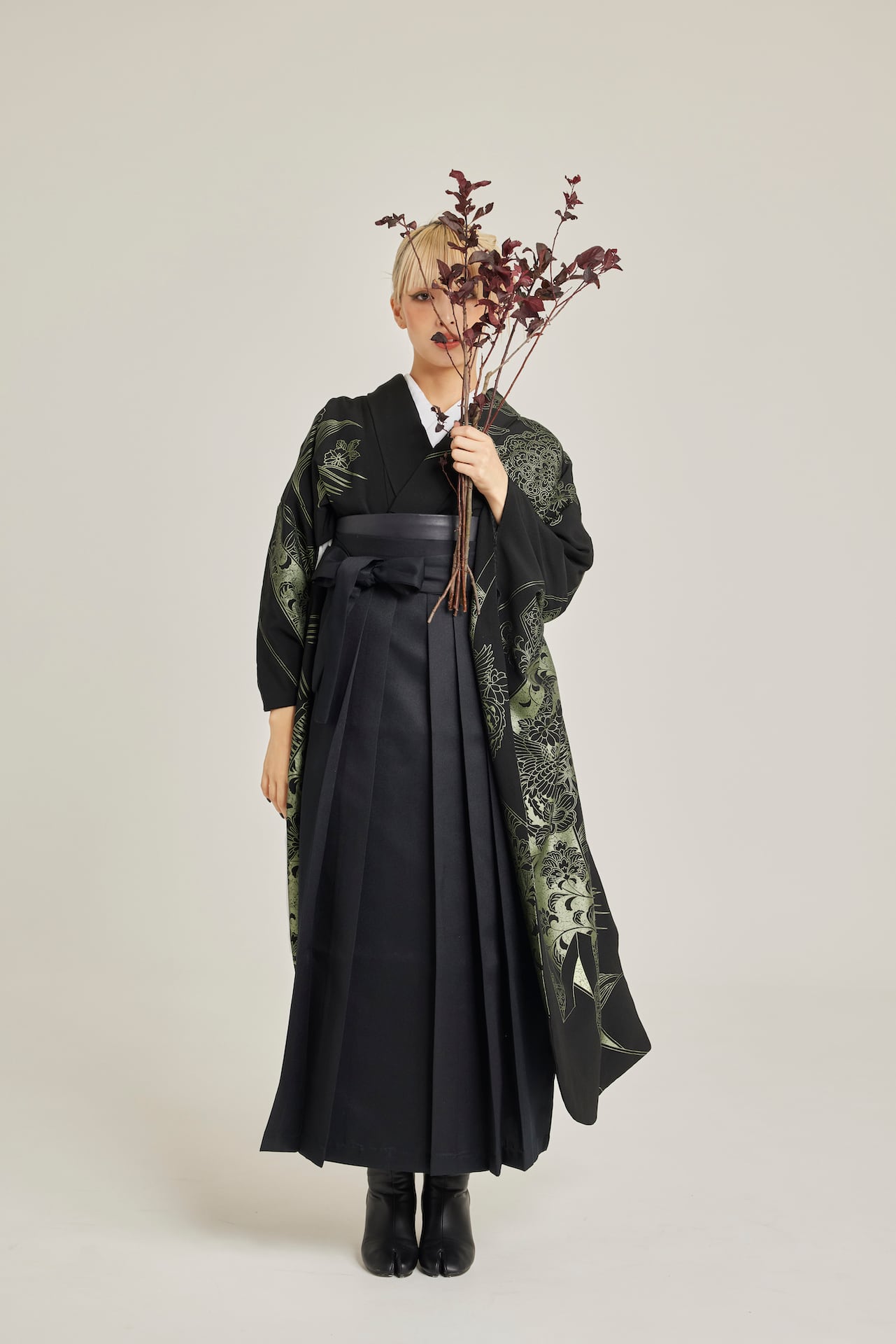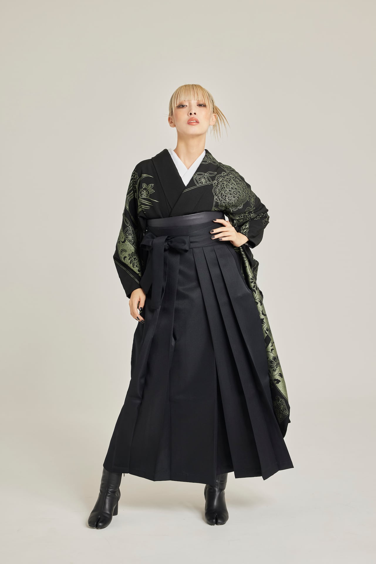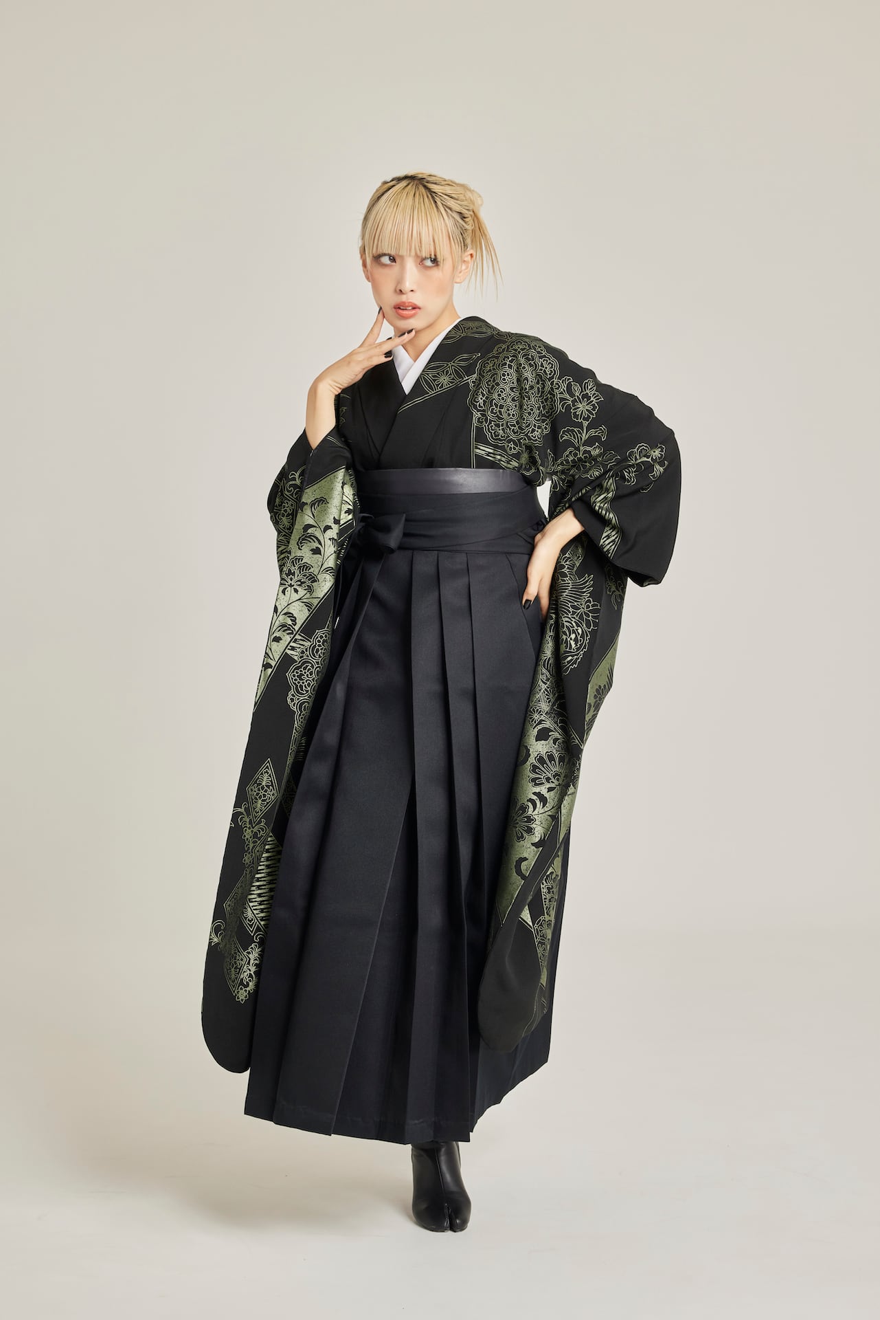 振袖/袴/半幅帯/足袋ブーツ/長襦袢/肌襦袢/足袋ソックス/衿芯/腰紐×4/伊達締め×2/コーリンベルト/帯板(小)/脱脂綿/ガーゼ