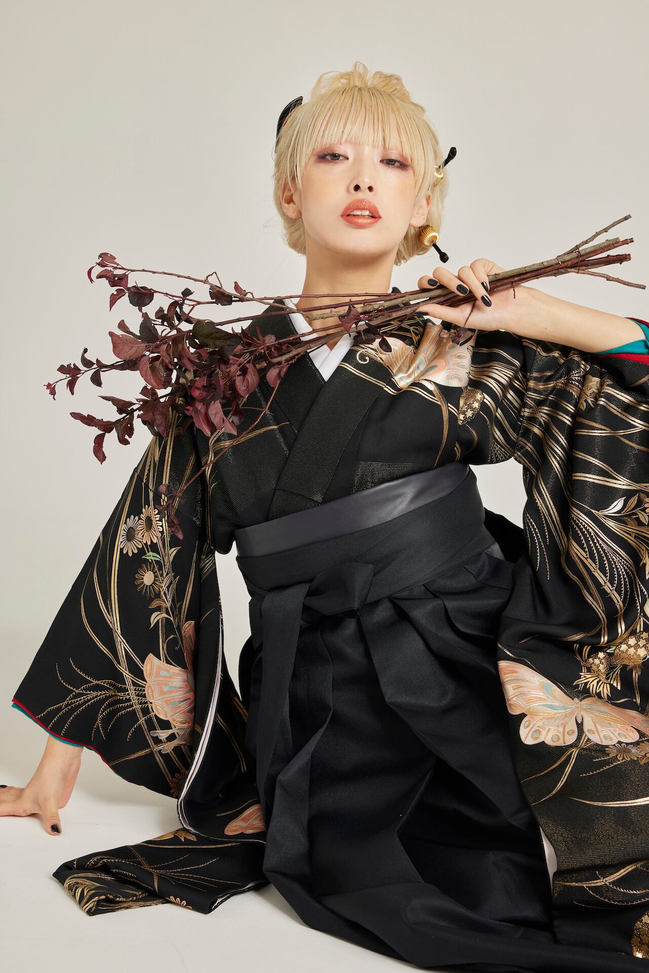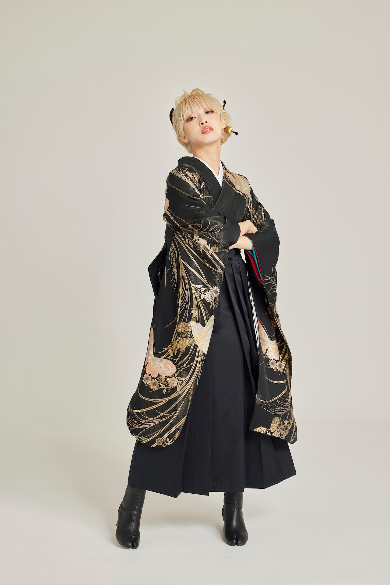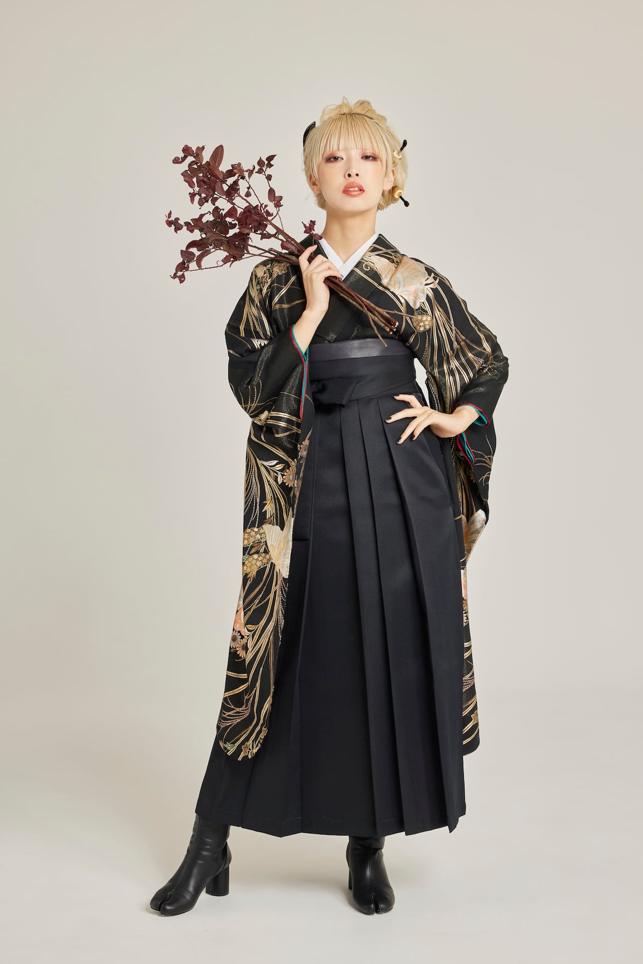 振袖/袴/半幅帯/足袋ブーツ/長襦袢/肌襦袢/足袋ソックス/衿芯/腰紐×4/伊達締め×2/コーリンベルト/帯板(小)/脱脂綿/ガーゼ