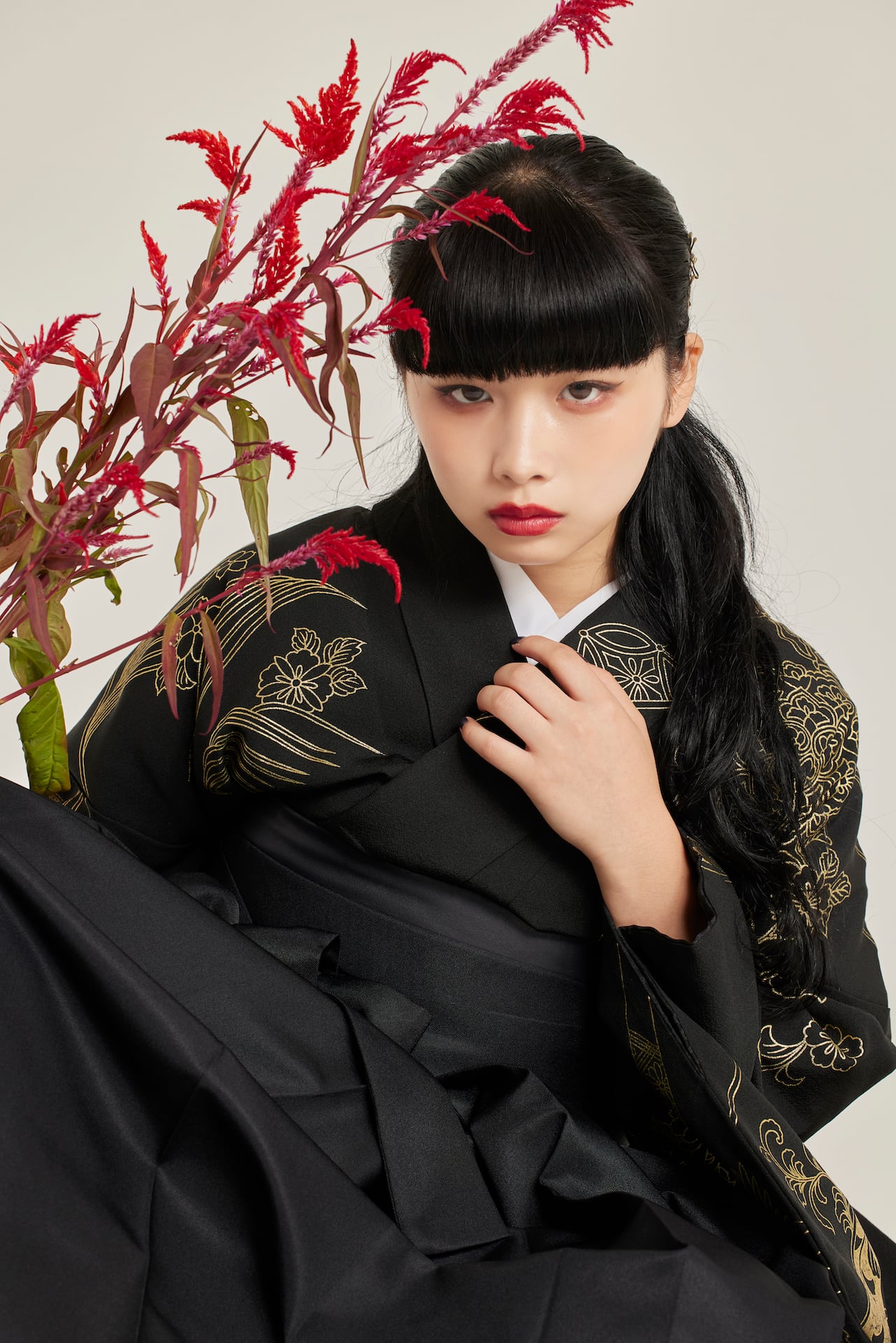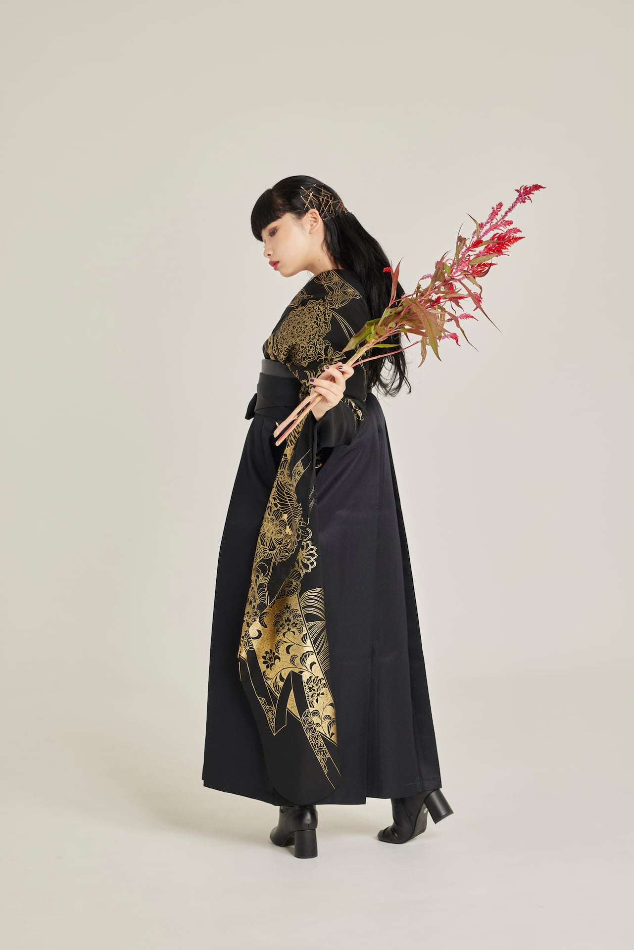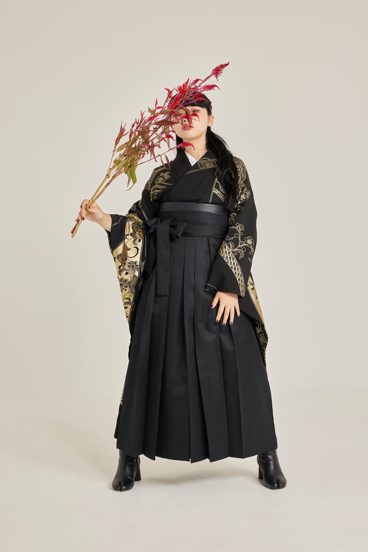 振袖/袴/半幅帯/足袋ブーツ/長襦袢/肌襦袢/足袋ソックス/衿芯/腰紐×4/伊達締め×2/コーリンベルト/帯板(小)/脱脂綿/ガーゼ