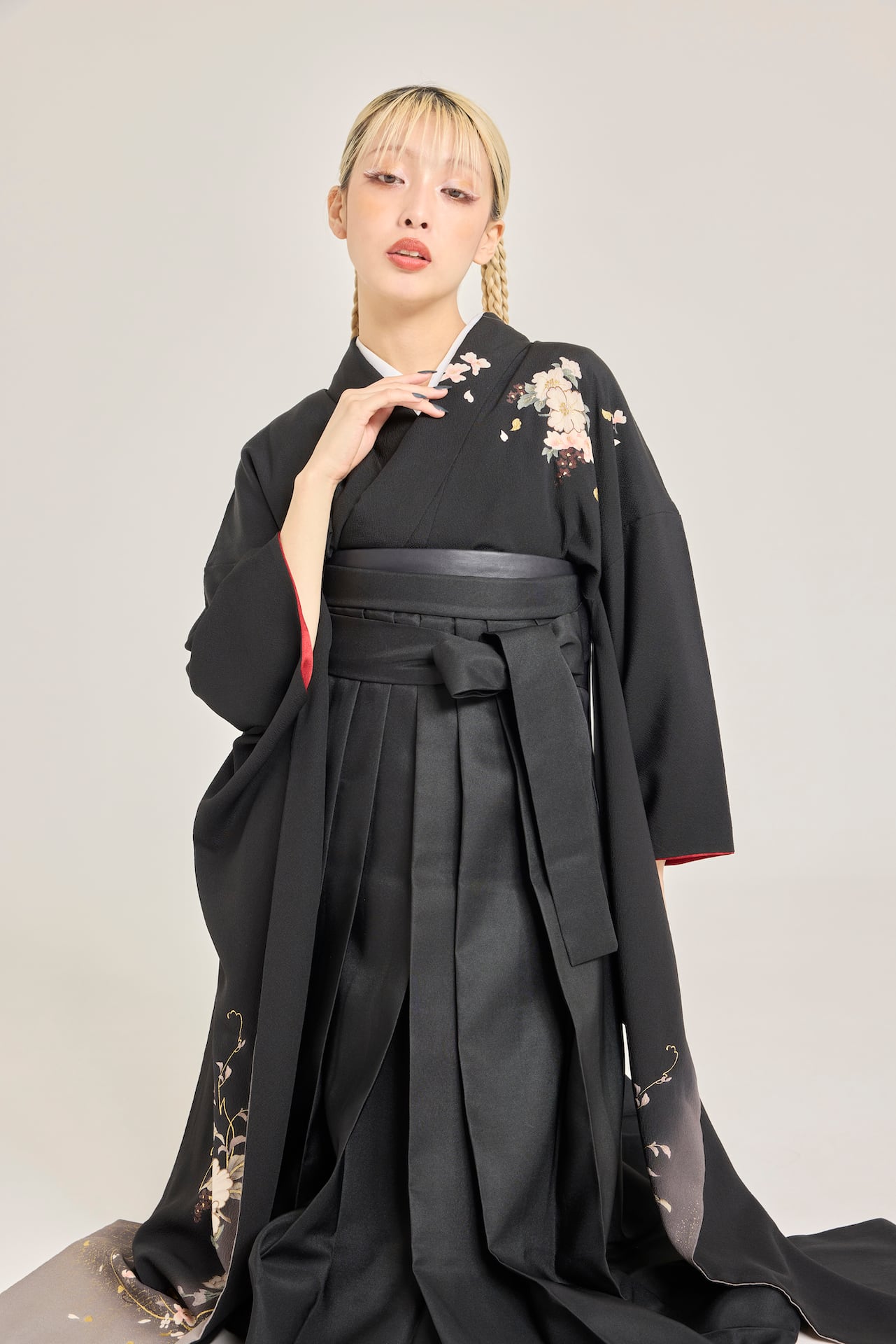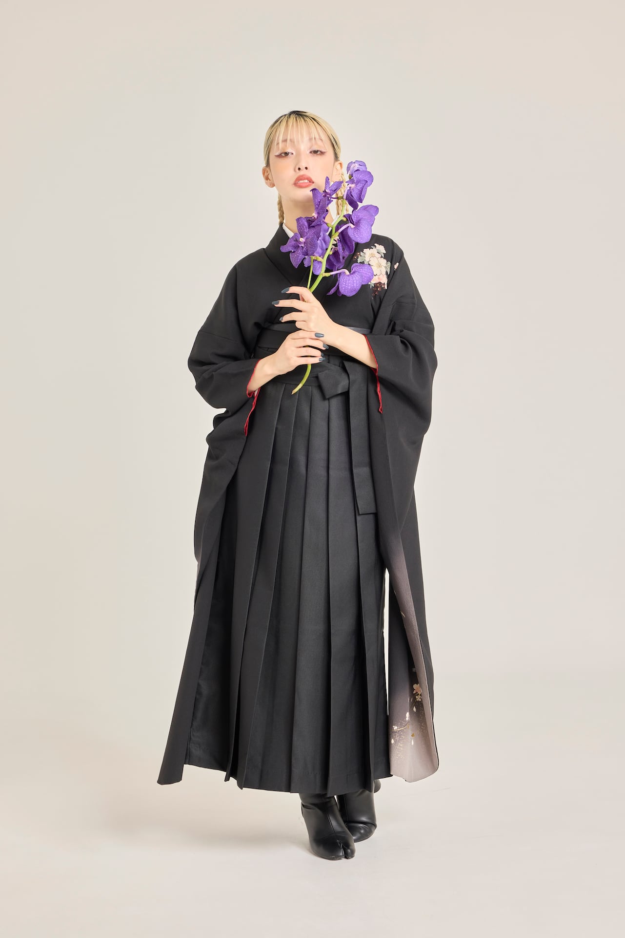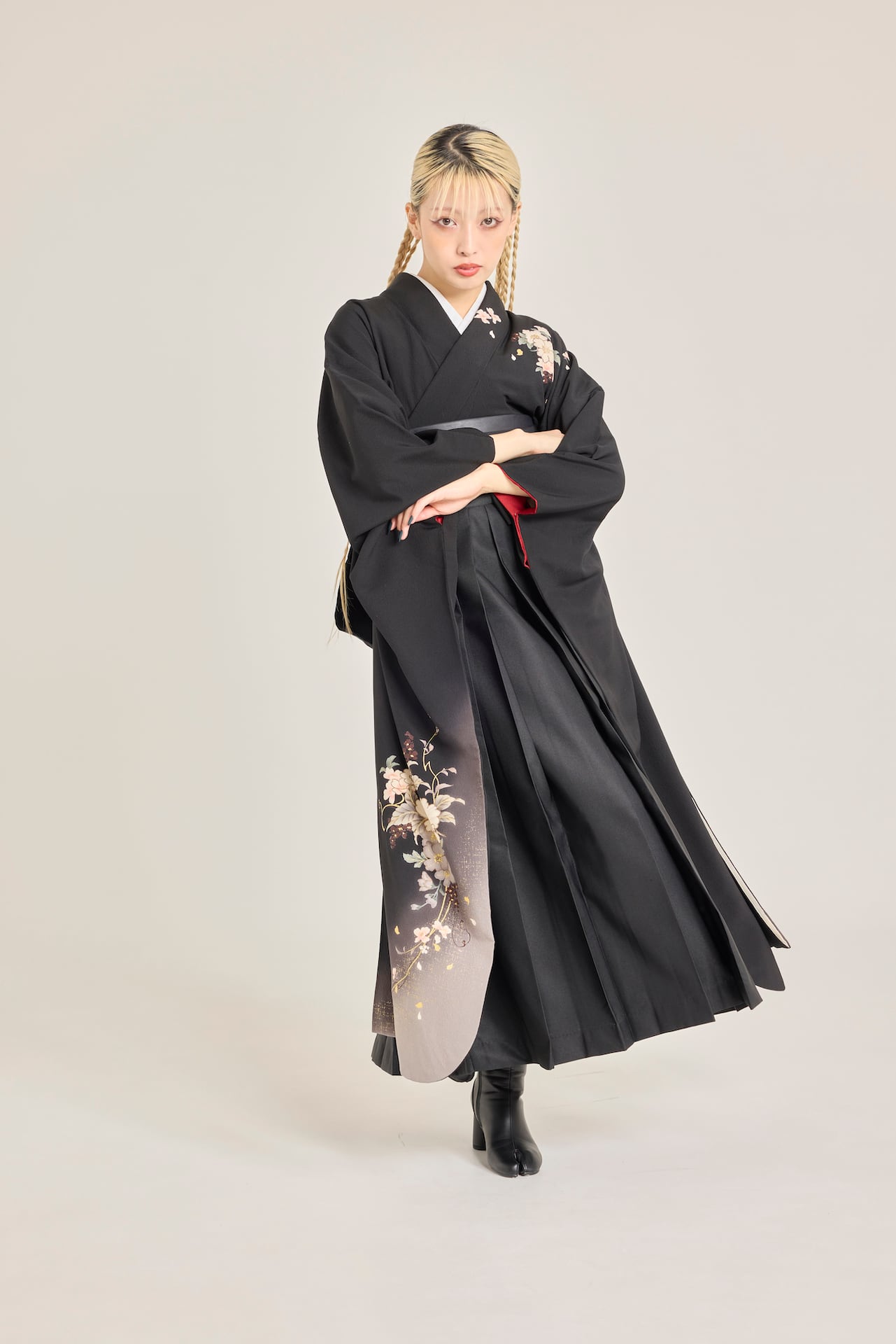 振袖/袴/半幅帯/足袋ブーツ/長襦袢/肌襦袢/足袋ソックス/衿芯/腰紐×4/伊達締め×2/コーリンベルト/帯板(小)/脱脂綿/ガーゼ