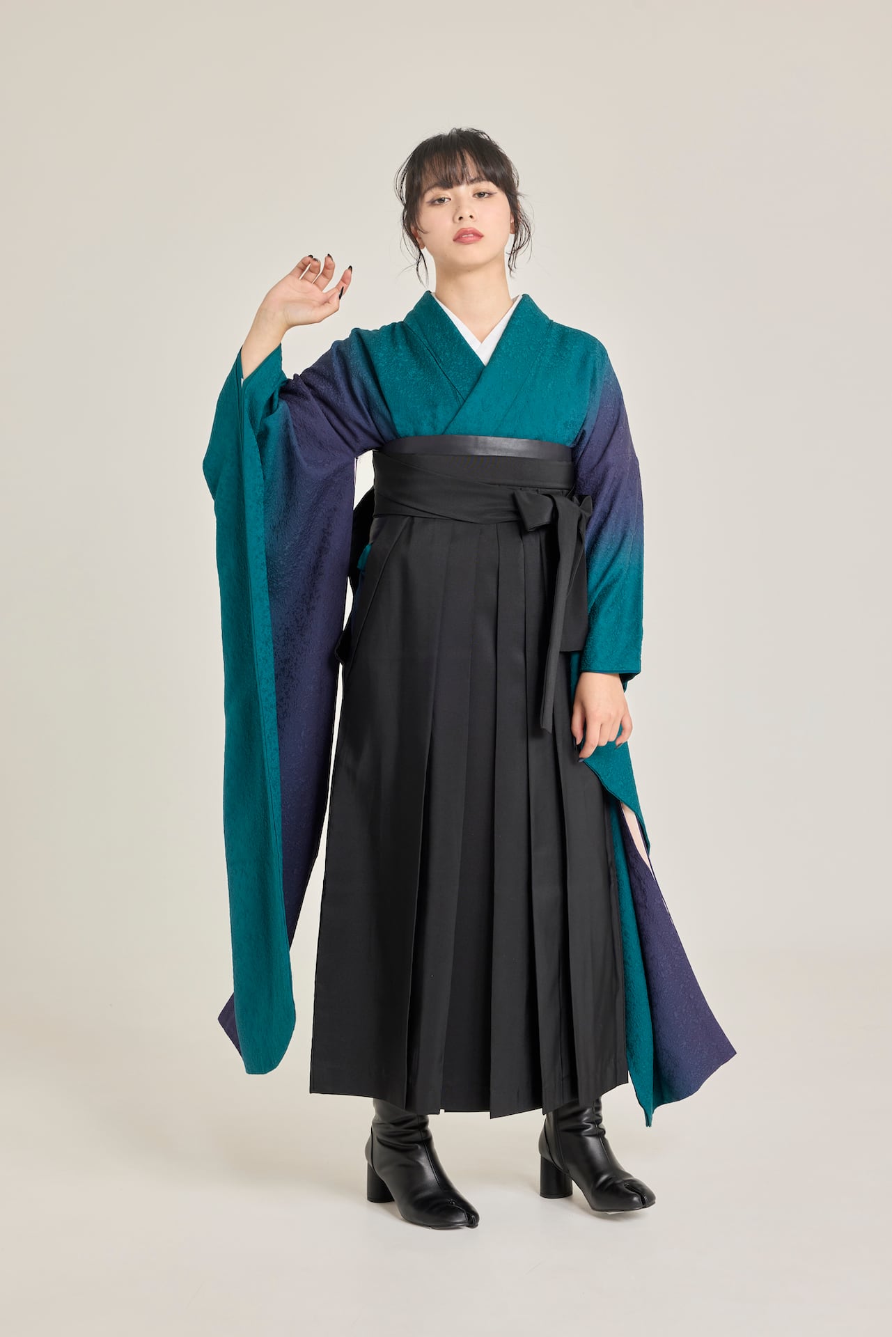 振袖/袴/半幅帯/足袋ブーツ/長襦袢/肌襦袢/足袋ソックス/衿芯/腰紐×4/伊達締め×2/コーリンベルト/帯板(小)/脱脂綿/ガーゼ