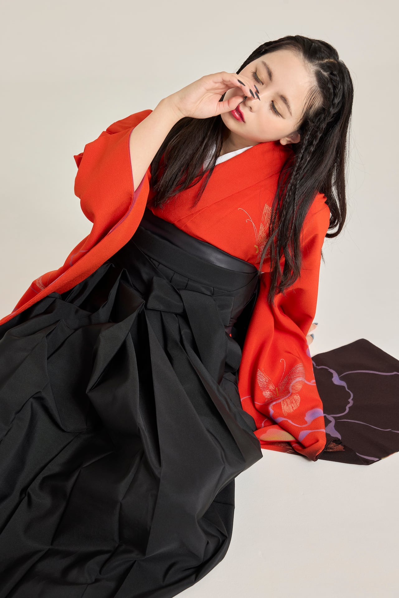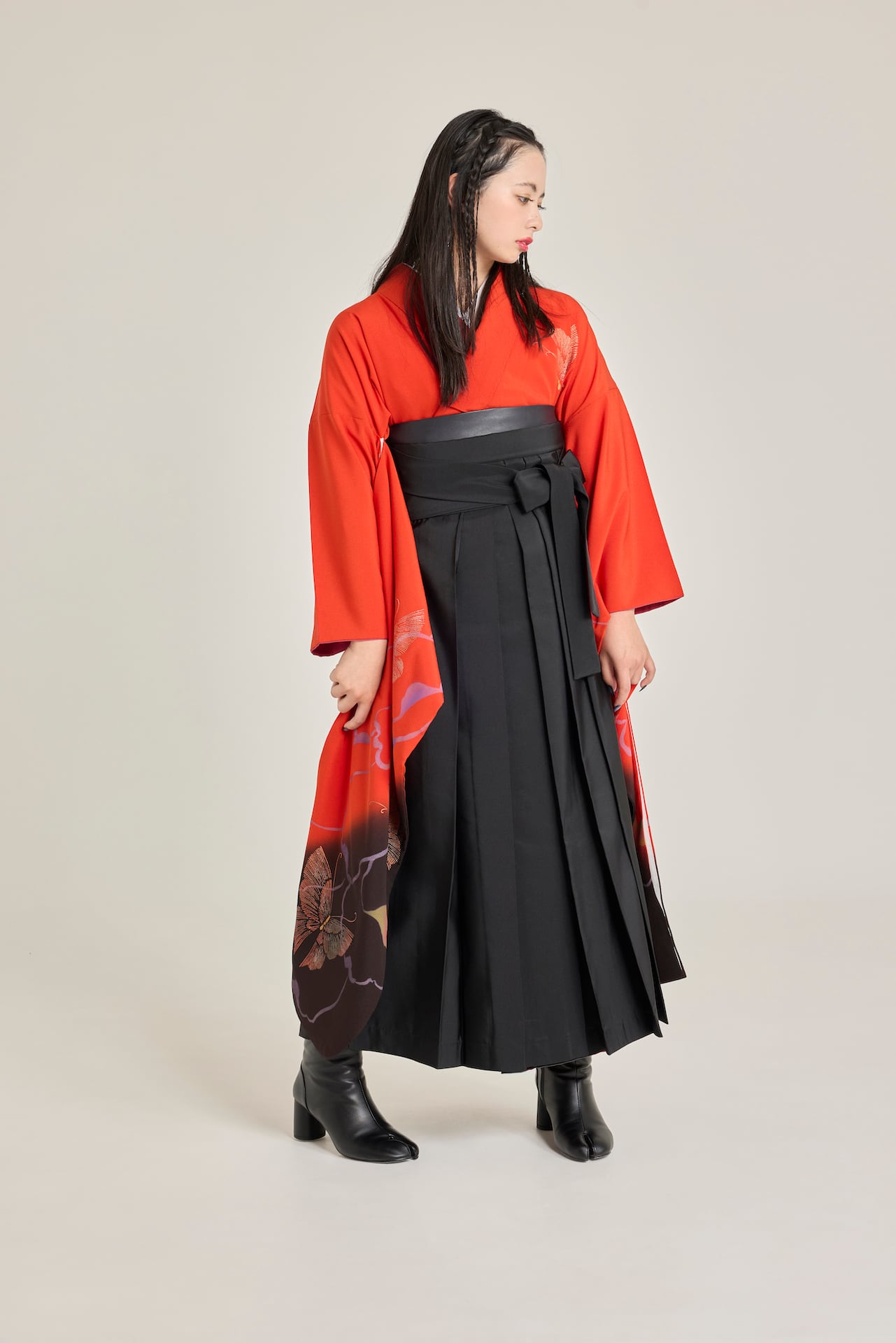 振袖/袴/半幅帯/足袋ブーツ/長襦袢/肌襦袢/足袋ソックス/衿芯/腰紐×4/伊達締め×2/コーリンベルト/帯板(小)/脱脂綿/ガーゼ