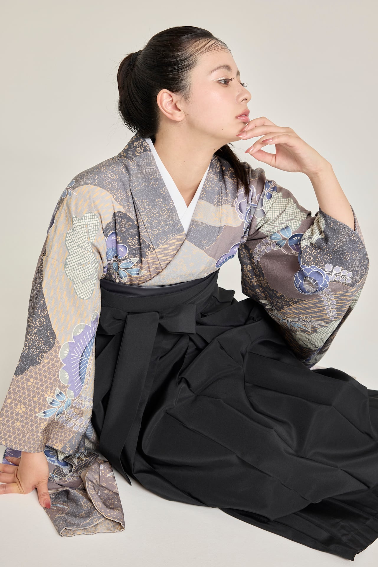 振袖/袴/半幅帯/足袋ブーツ/長襦袢/肌襦袢/足袋ソックス/衿芯/腰紐×4/伊達締め×2/コーリンベルト/帯板(小)/脱脂綿/ガーゼ
