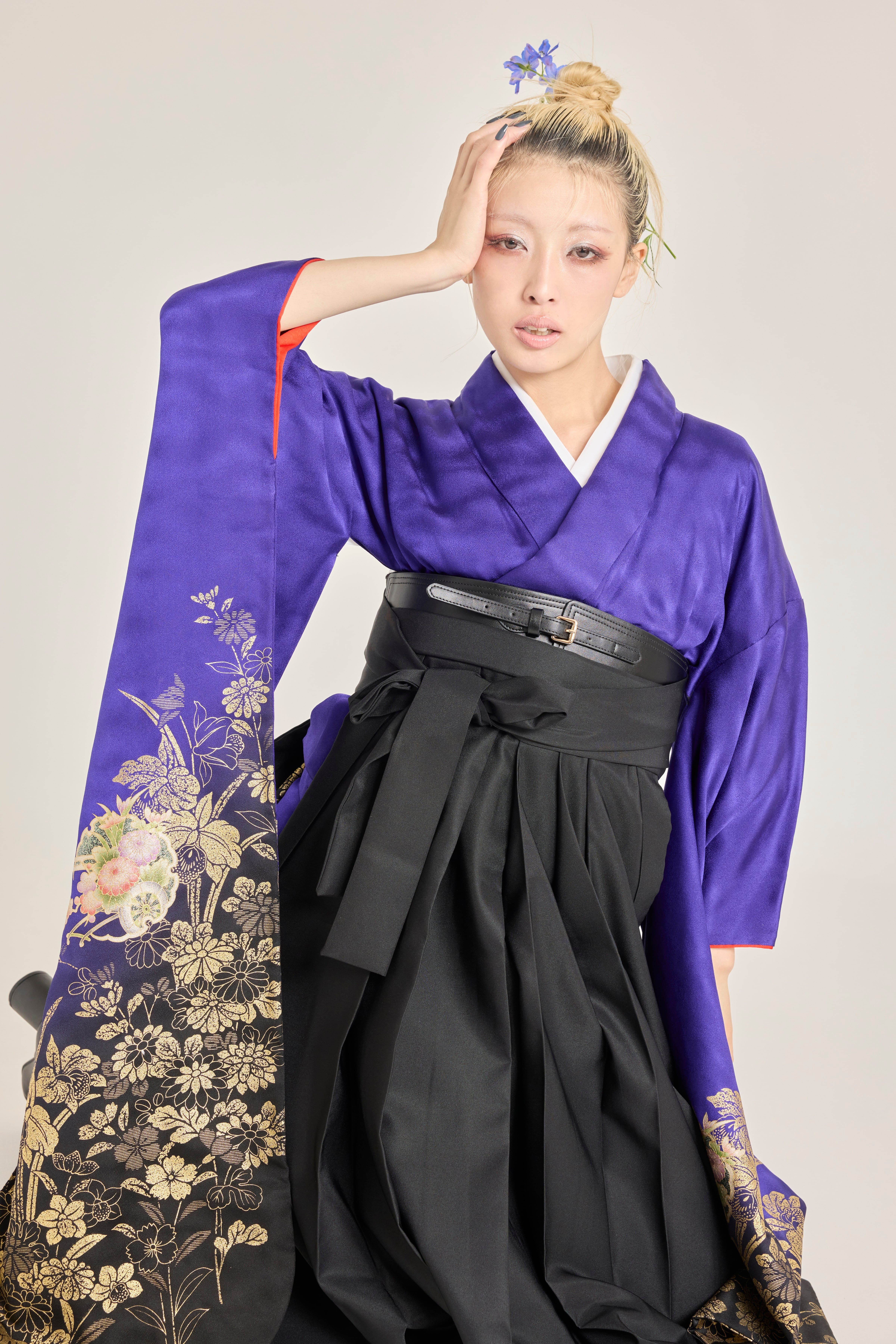振袖/袴/半幅帯/足袋ブーツ/長襦袢/肌襦袢/足袋ソックス/衿芯/腰紐×4/伊達締め×2/コーリンベルト/帯板(小)/脱脂綿/ガーゼ