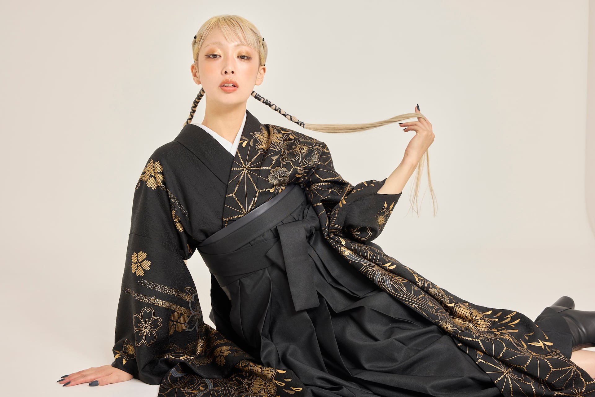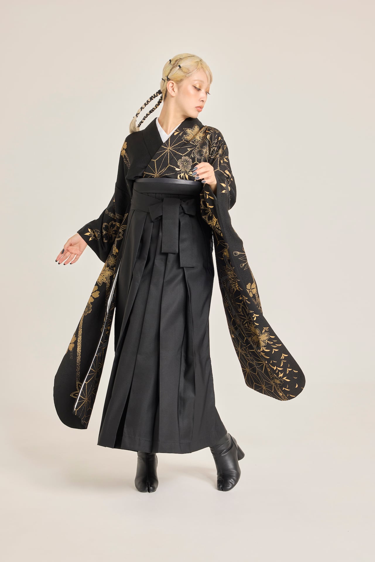 振袖/袴/半幅帯/足袋ブーツ/長襦袢/肌襦袢/足袋ソックス/衿芯/腰紐×4/伊達締め×2/コーリンベルト/帯板(小)/脱脂綿/ガーゼ