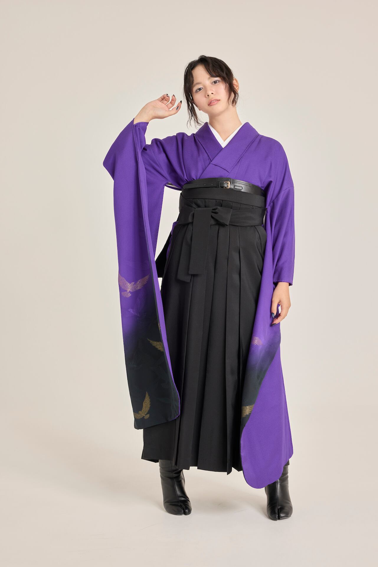 振袖/袴/半幅帯/足袋ブーツ/長襦袢/肌襦袢/足袋ソックス/衿芯/腰紐×4/伊達締め×2/コーリンベルト/帯板(小)/脱脂綿/ガーゼ