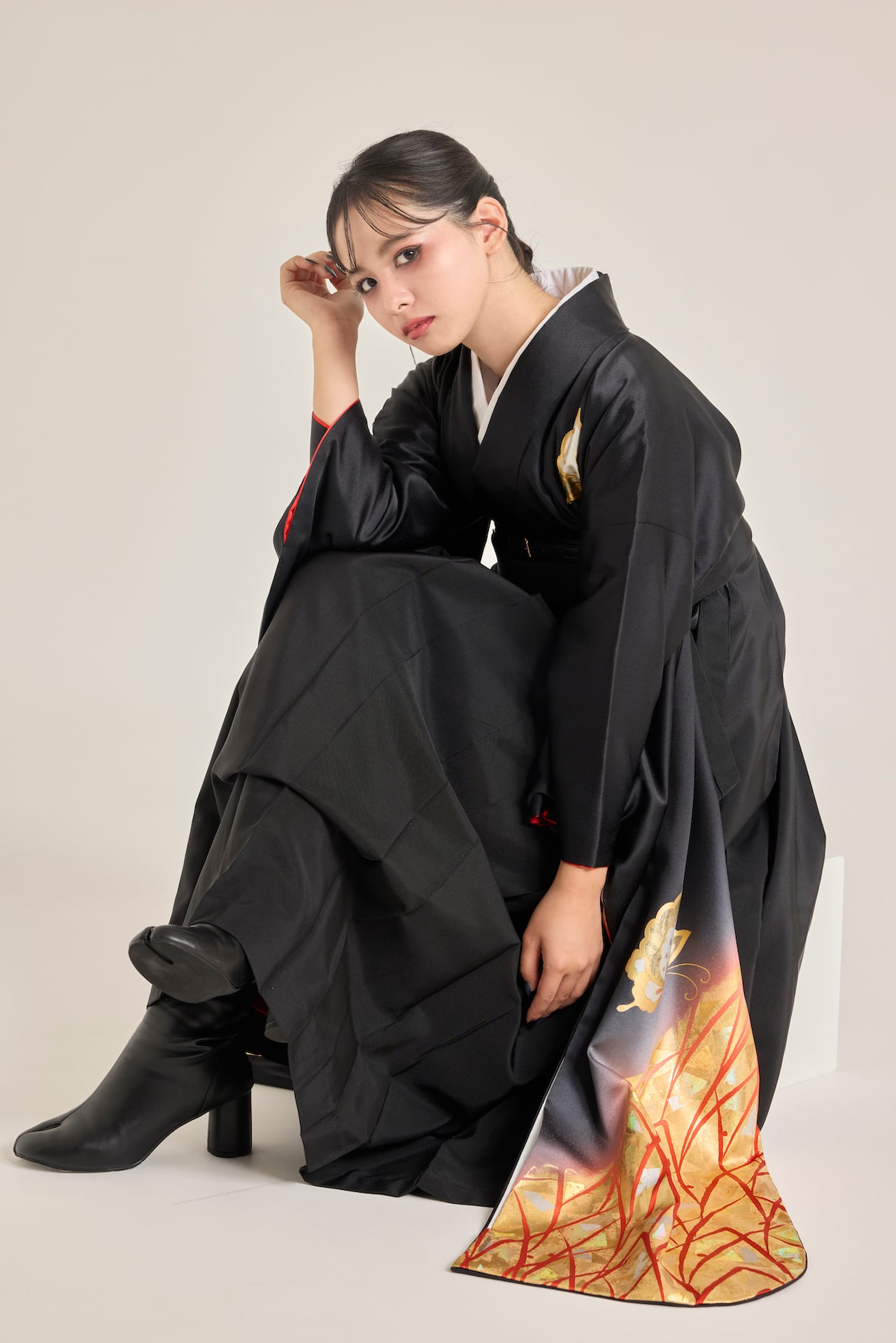 振袖/袴/半幅帯/足袋ブーツ/長襦袢/肌襦袢/足袋ソックス/衿芯/腰紐×4/伊達締め×2/コーリンベルト/帯板(小)/脱脂綿/ガーゼ