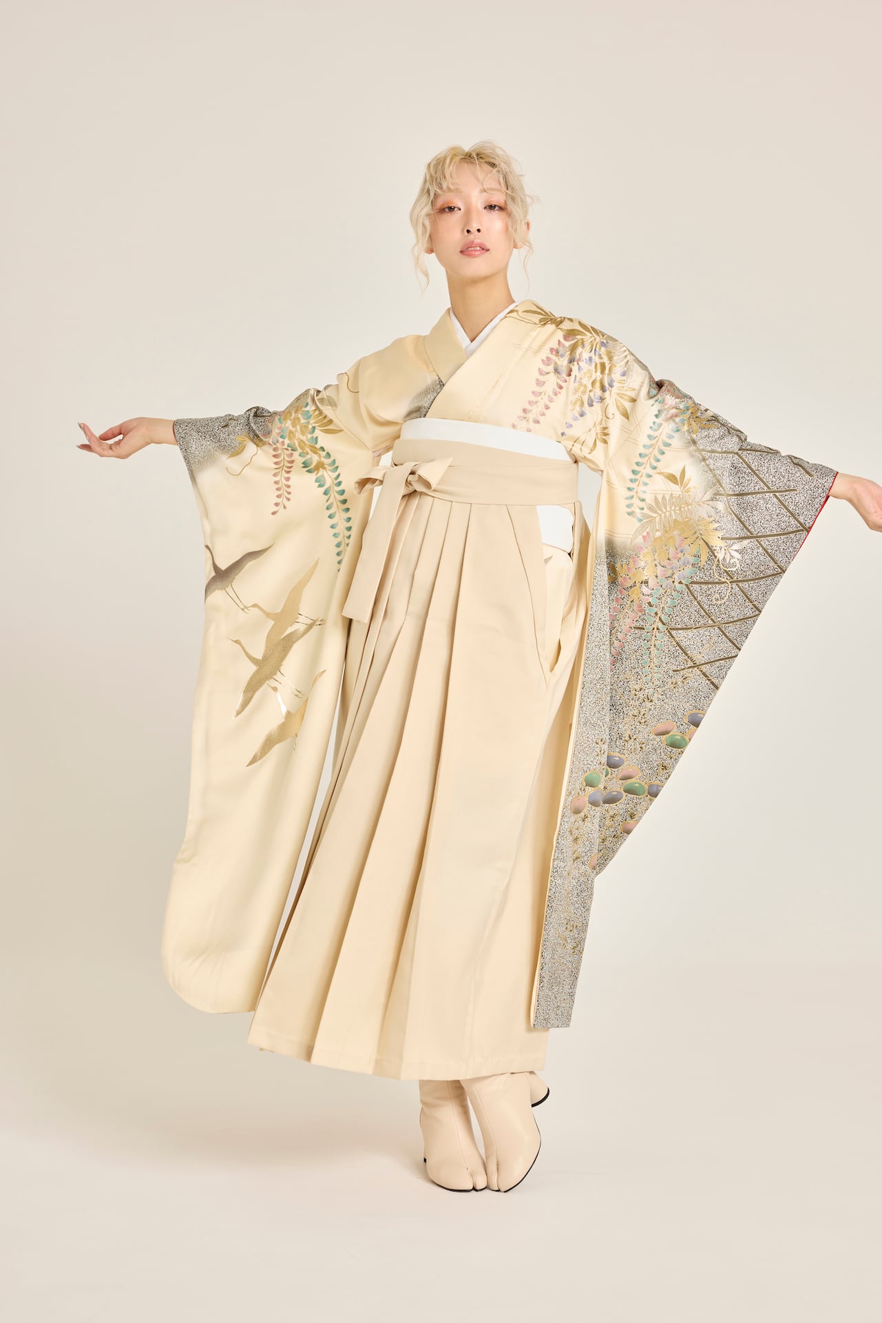 振袖/袴/半幅帯/足袋ブーツ/長襦袢/肌襦袢/足袋ソックス/衿芯/腰紐×4/伊達締め×2/コーリンベルト/帯板(小)/脱脂綿/ガーゼ