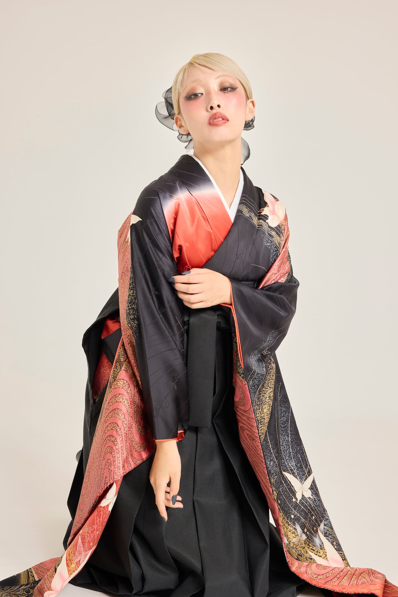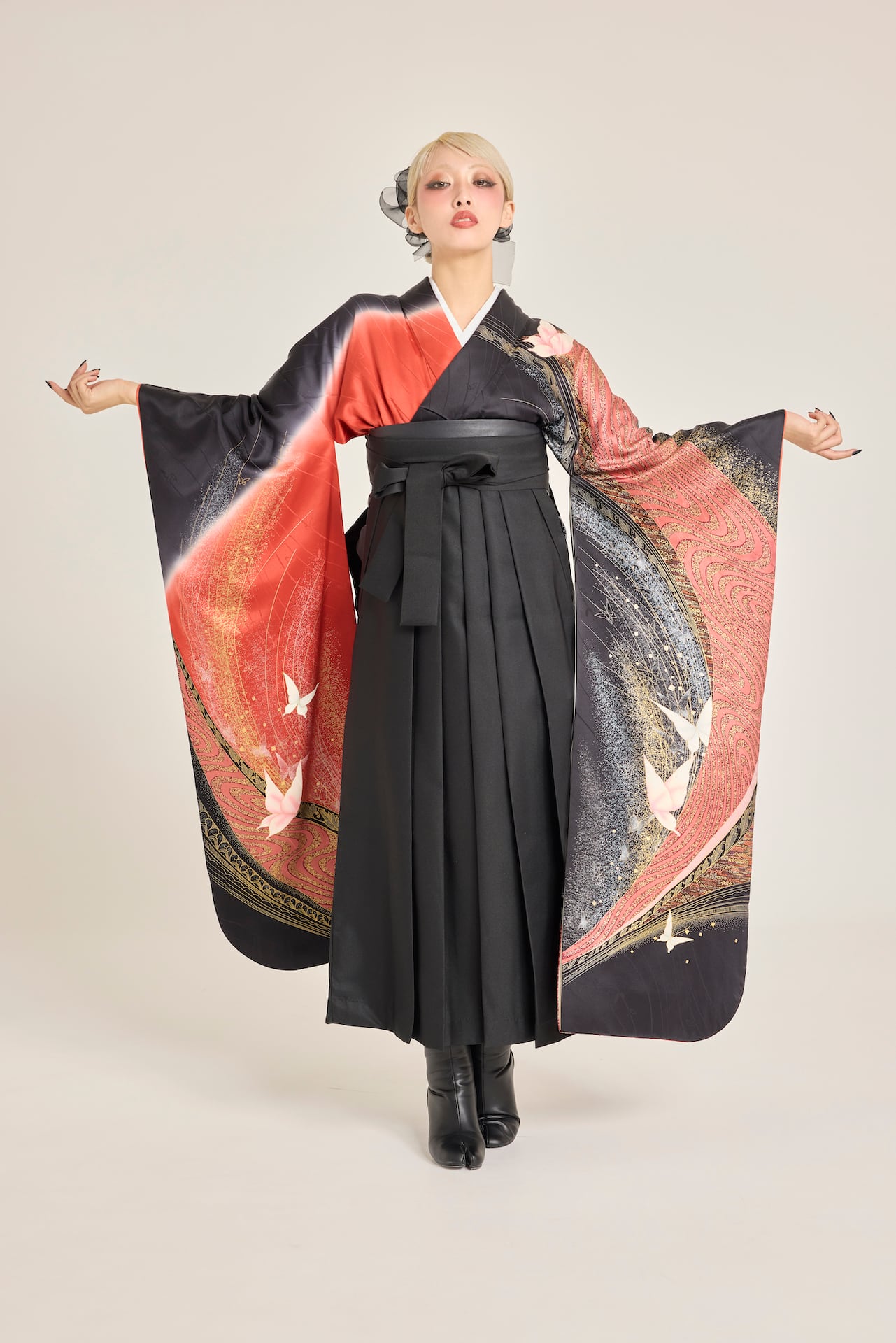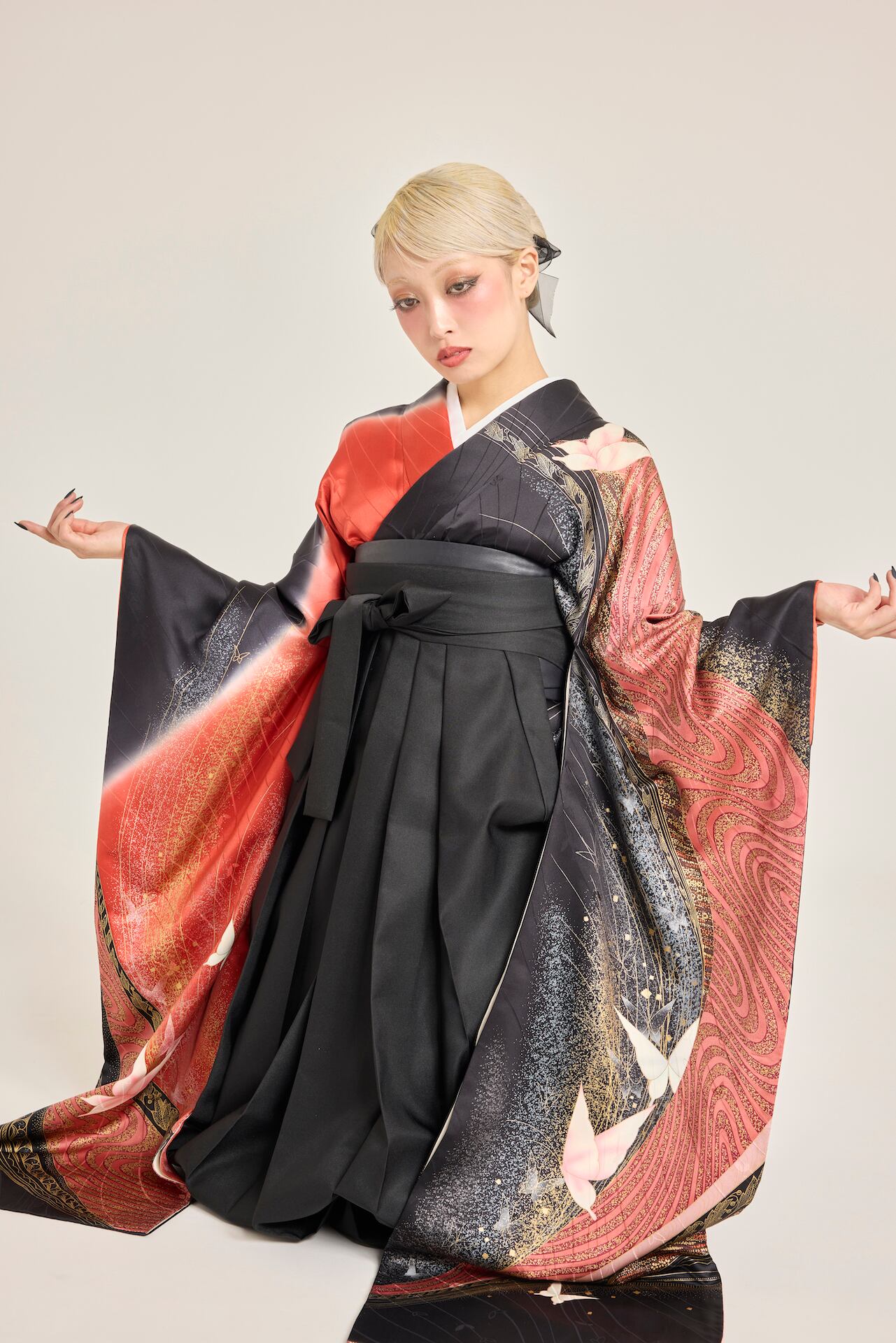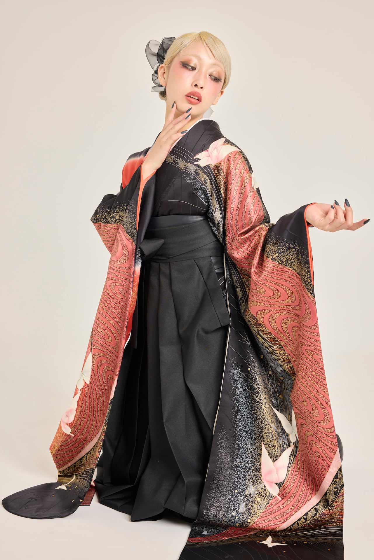 振袖/袴/半幅帯/足袋ブーツ/長襦袢/肌襦袢/足袋ソックス/衿芯/腰紐×4/伊達締め×2/コーリンベルト/帯板(小)/脱脂綿/ガーゼ
