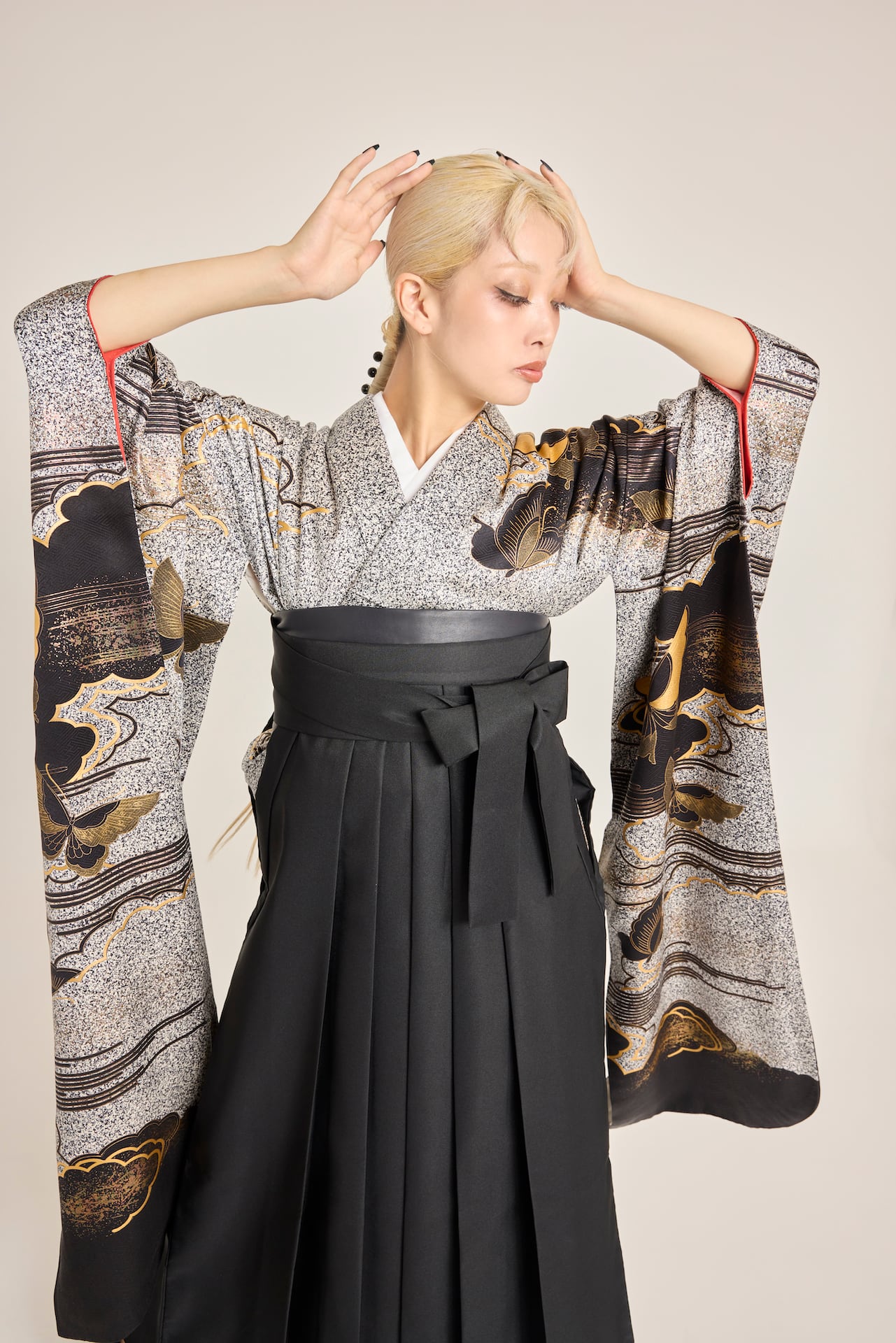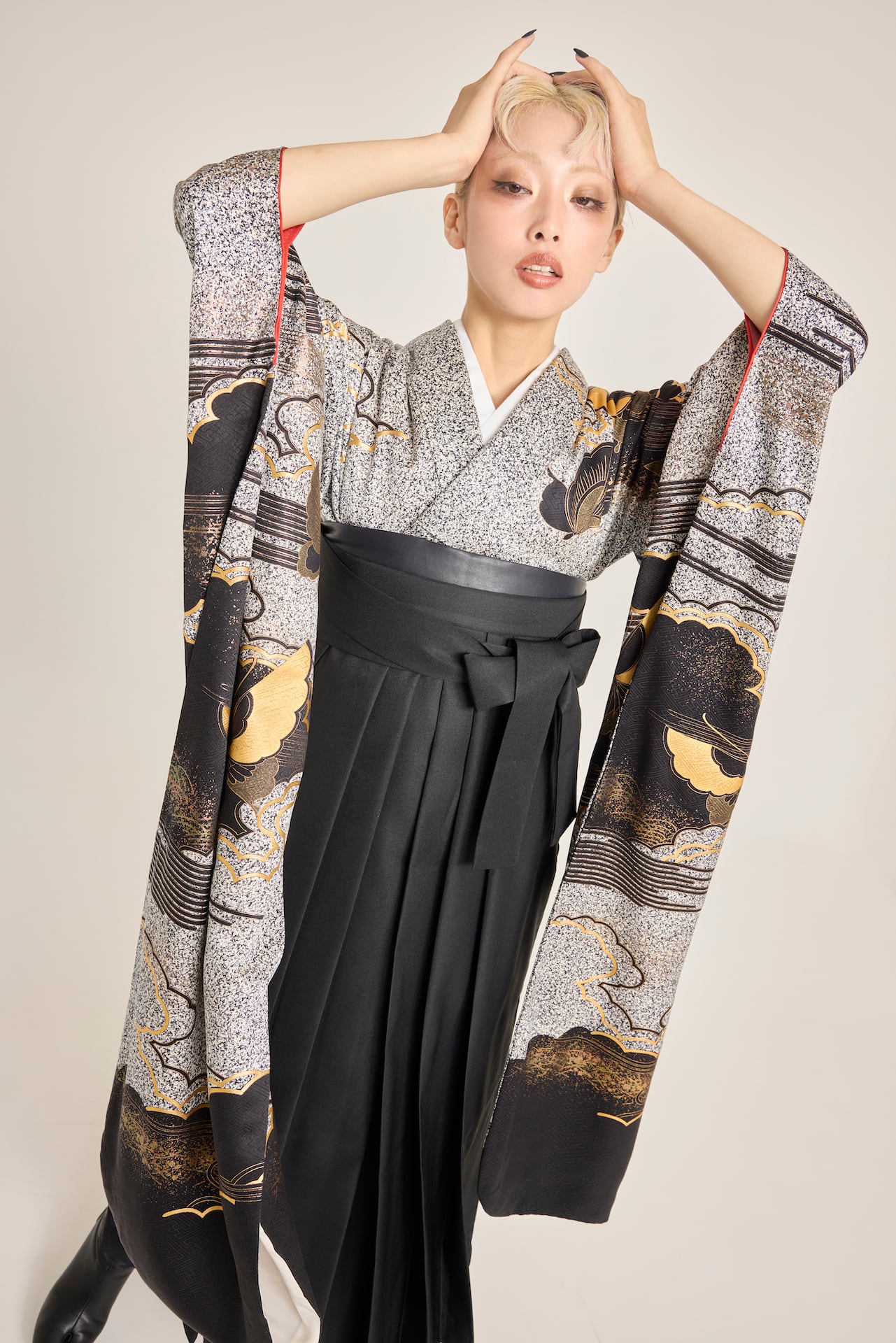 振袖/袴/半幅帯/足袋ブーツ/長襦袢/肌襦袢/足袋ソックス/衿芯/腰紐×4/伊達締め×2/コーリンベルト/帯板(小)/脱脂綿/ガーゼ