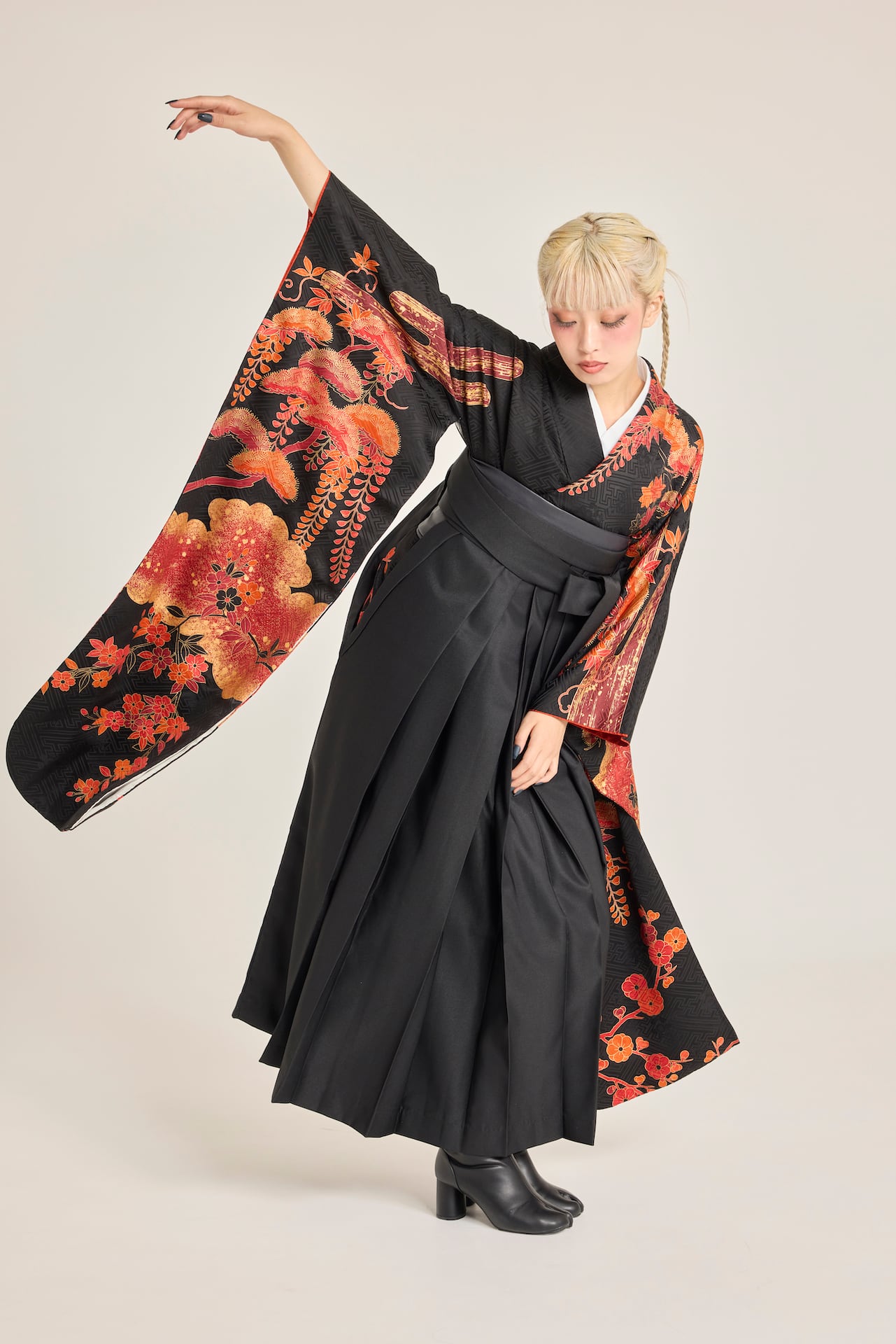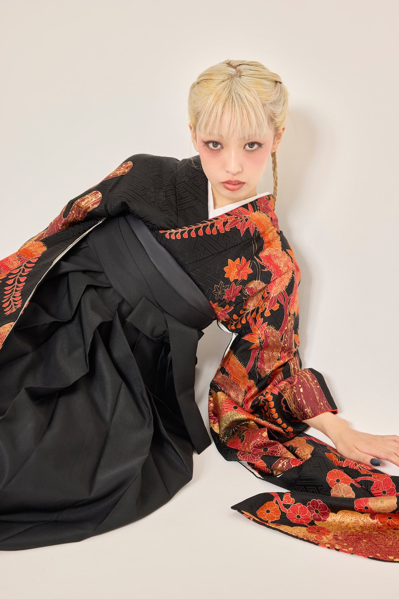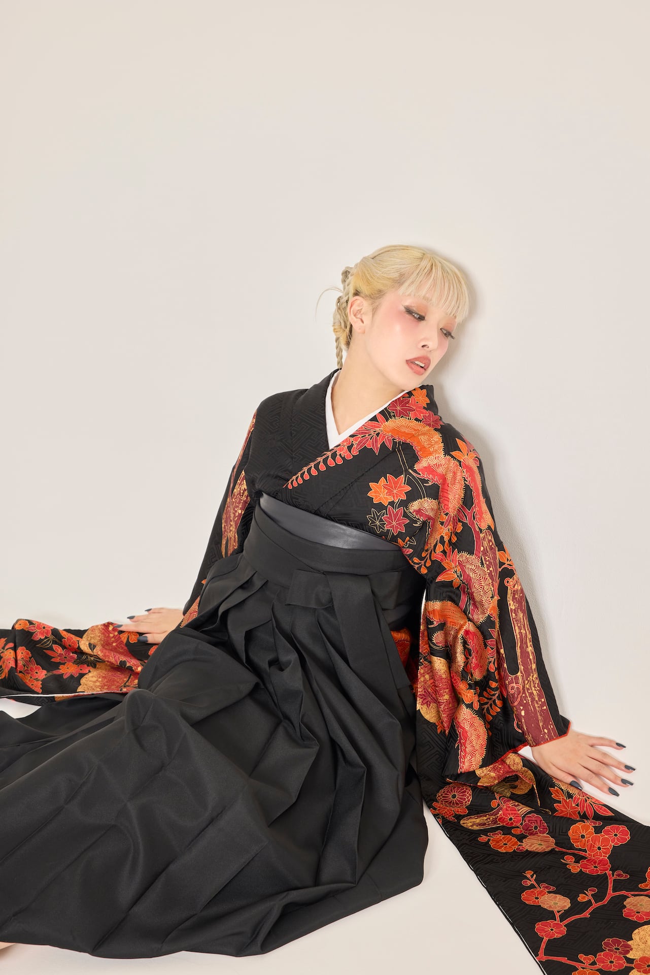 振袖/袴/半幅帯/足袋ブーツ/長襦袢/肌襦袢/足袋ソックス/衿芯/腰紐×4/伊達締め×2/コーリンベルト/帯板(小)/脱脂綿/ガーゼ